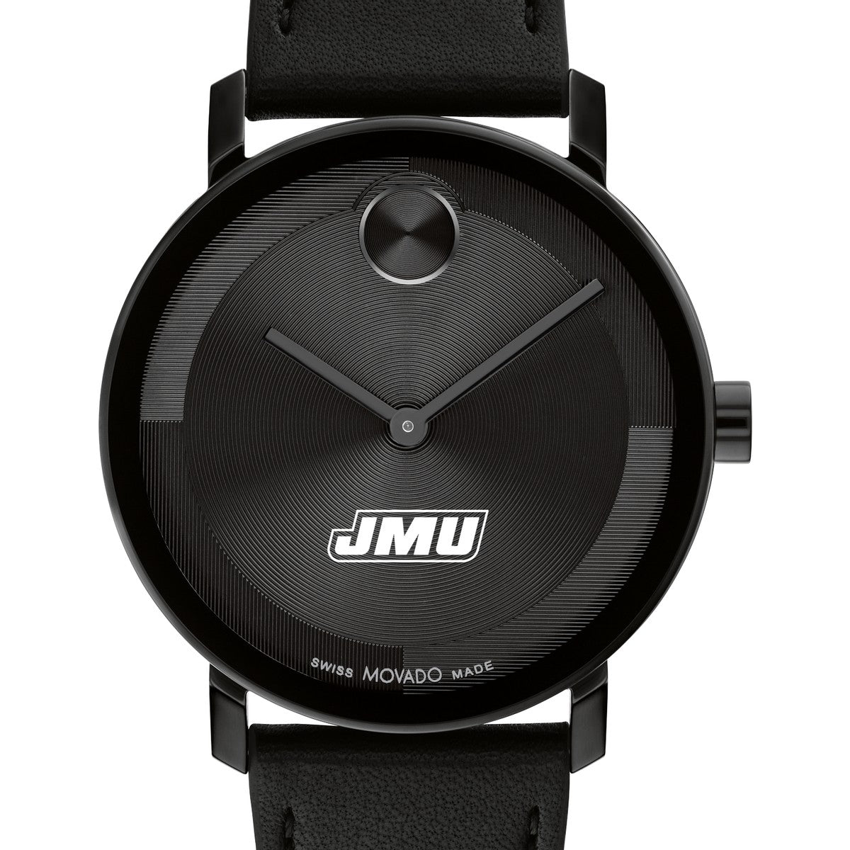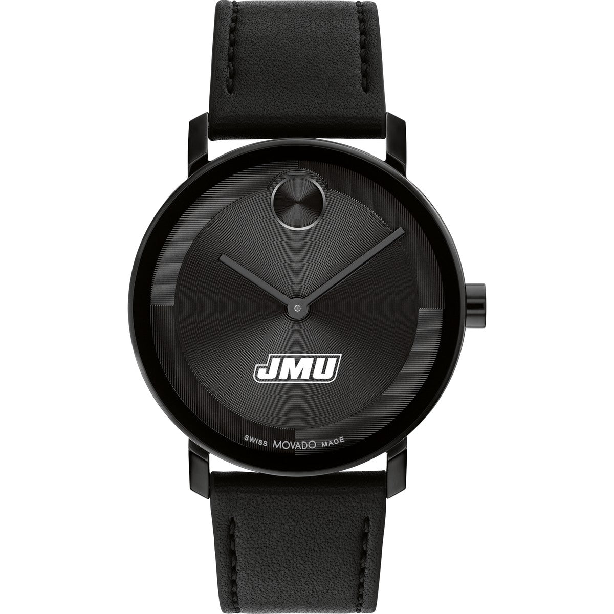Adorned with the esteemed James Madison Logo emblem, this James Madison University Movado showcases a black Nappa leather strap and black ionic-plated steel case, embodying the essence of modern luxury. Complimentary personal engraving.