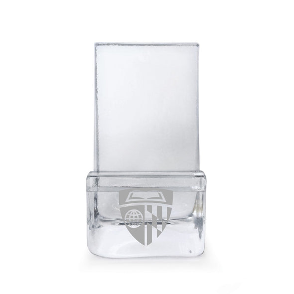 This handcrafted Johns Hopkins University Glass Phone Holder is the perfect addition to your work or home environment. Formed from only the finest clear glass, the Johns Hopkins Logo is distinctly etched on the front.