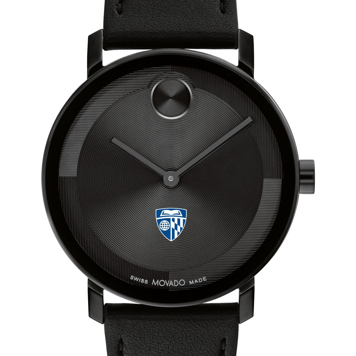 Johns Hopkins University Men's Movado BOLD with Black Leather Strap
