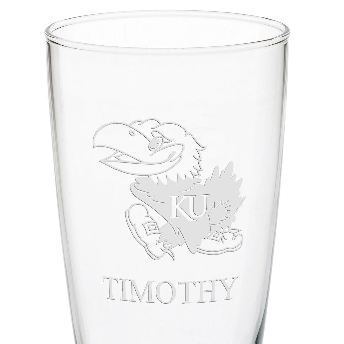 Fans can raise a glass to Kansas with these glasses. The Kansas logo is deep-etched, and your name can be added under the logo for free.
