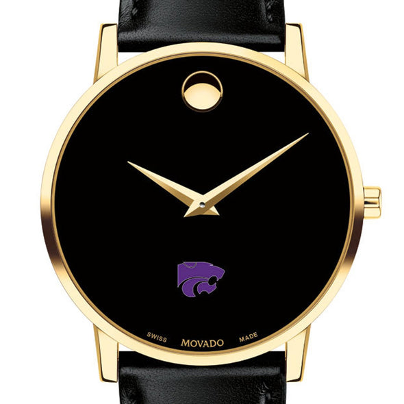 Kansas State University Men's Movado Museum watch features the Kansas State logo in full color at 6 o'clock on black dial. Created in 1947, the iconic concave dot symbolizes the sun at high-noon. Complimentary personal engraving.
