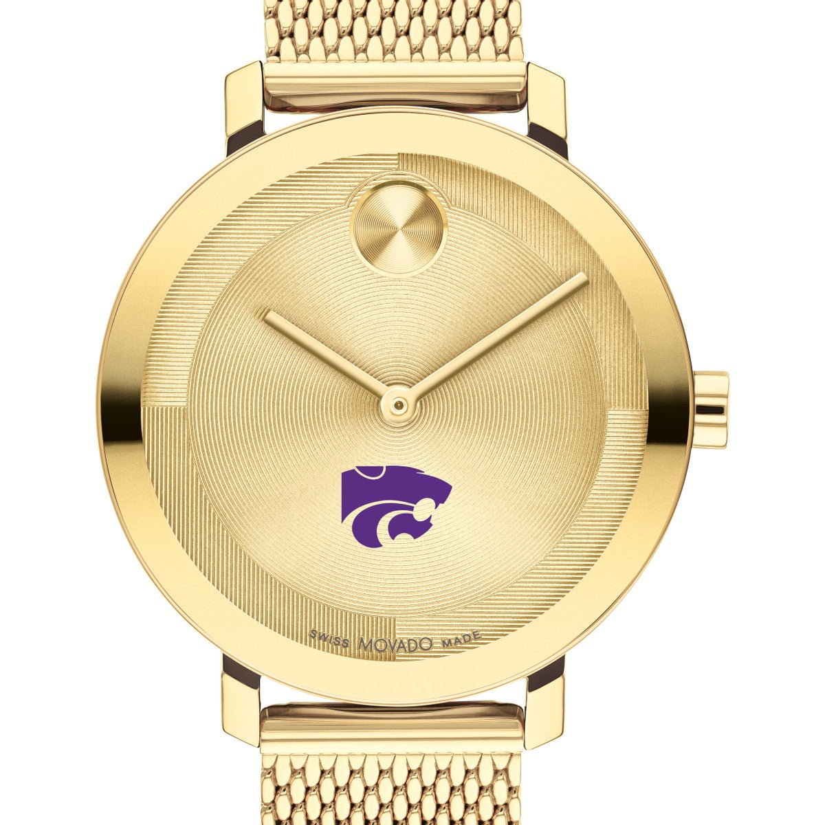 The Kansas State University Women's BOLD Movado features the prestigious Kansas State logo. Its pale gold Ionic-plated stainless steel mesh bracelet exudes contemporary elegance, making it a timeless accessory for the modern woman.