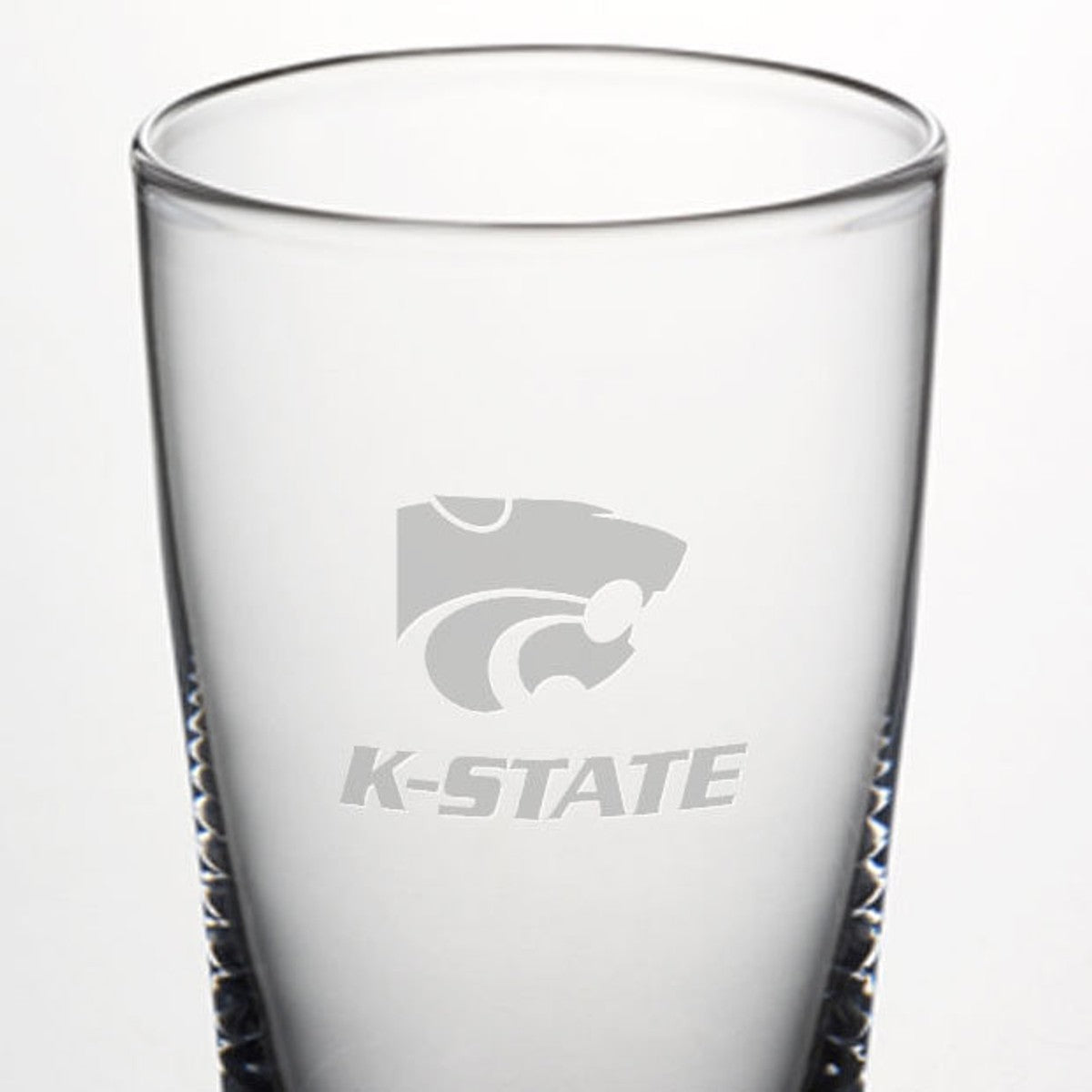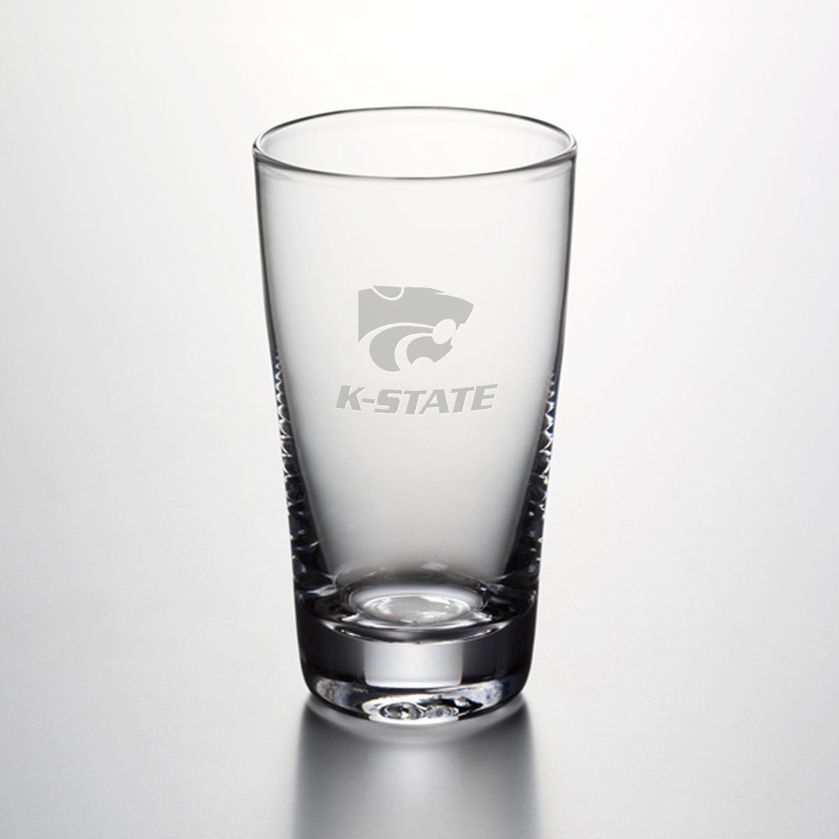 Kansas State Pint Glass features the Kansas State logo handsomely engraved on the hand-blown glass. From its narrowly flared lip to its sleek, cylindrical body and sturdy, solid base, this pint glass is a classic.