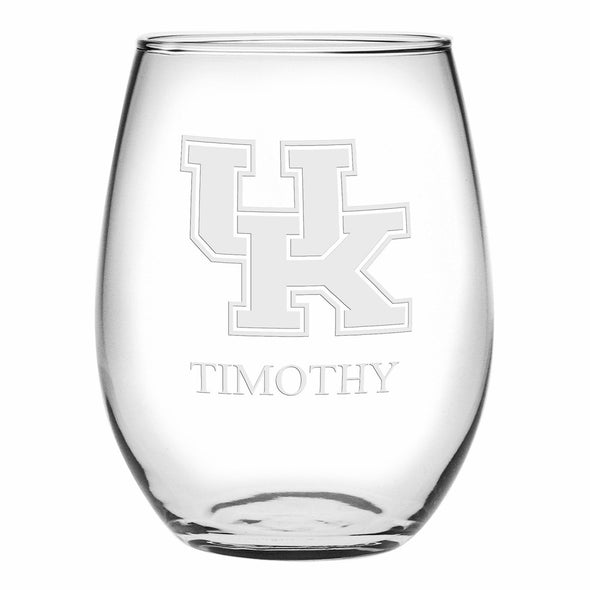 These modern University of Kentucky stemless wine glasses are perfect for every occasion and any type of wine. Each glass is made in the USA and laser etched with Kentucky Logo.