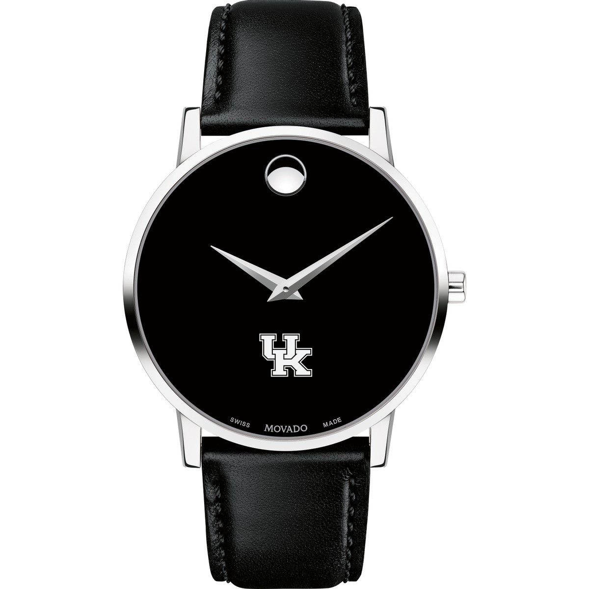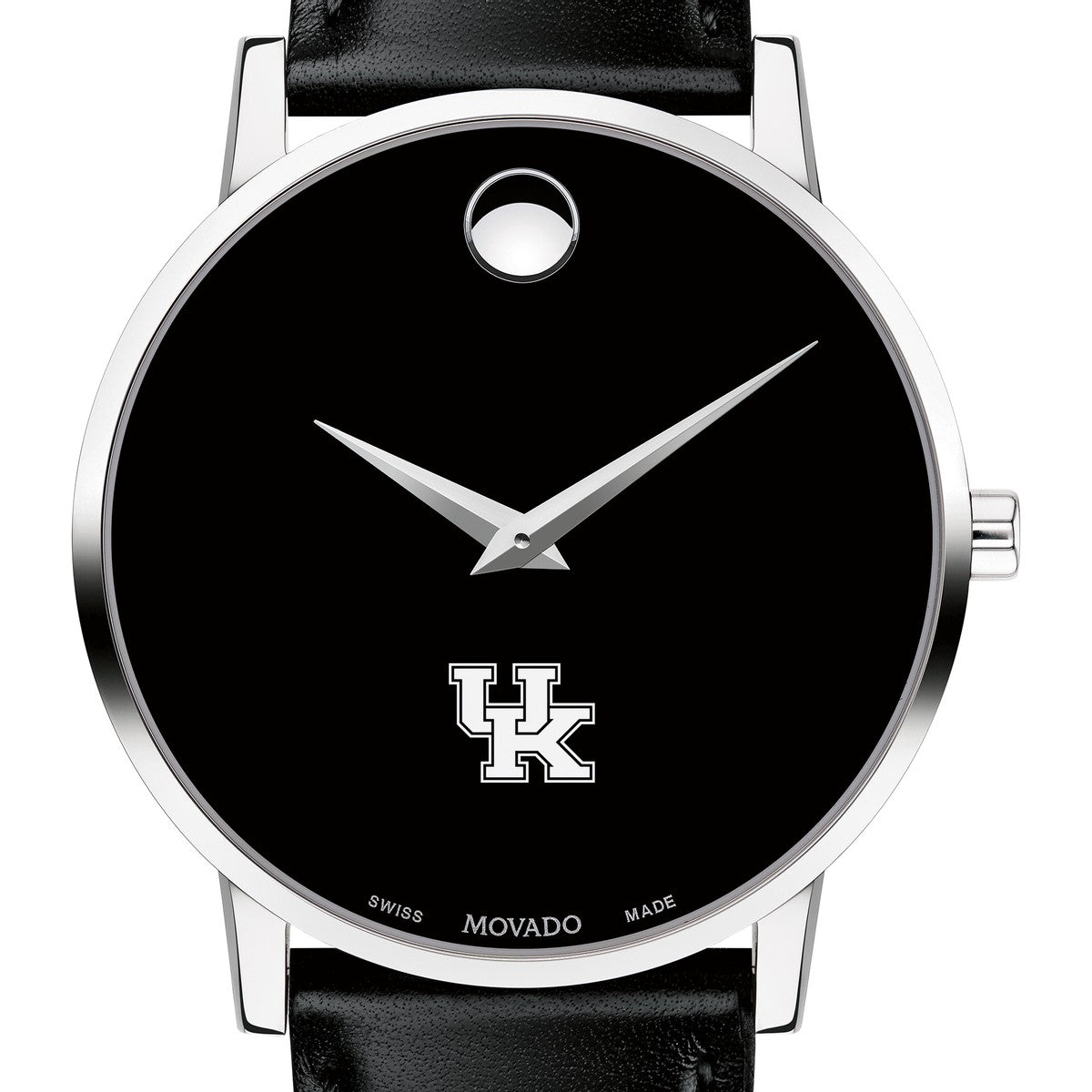 University of Kentucky Men's Movado Museum watch features the Kentucky Logo in full color at 6 o'clock on black dial. Created in 1947, the iconic concave dot symbolizes the sun at high-noon. Complimentary personal engraving.
