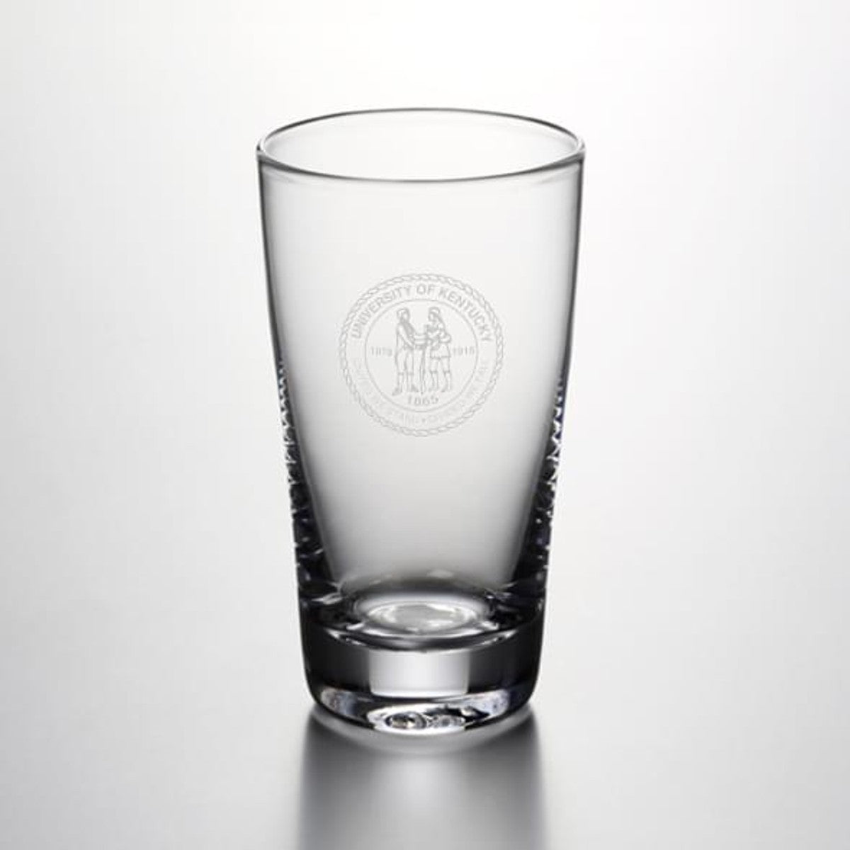 Kentucky Pint Glass features the Kentucky Logo handsomely engraved on the hand-blown glass. From its narrowly flared lip to its sleek, cylindrical body and sturdy, solid base, this pint glass is a classic.