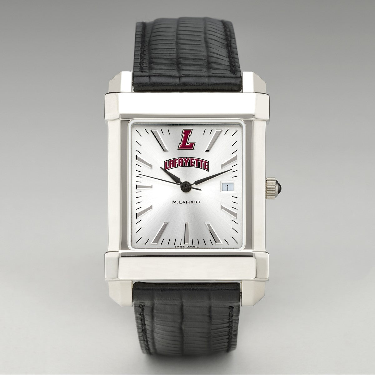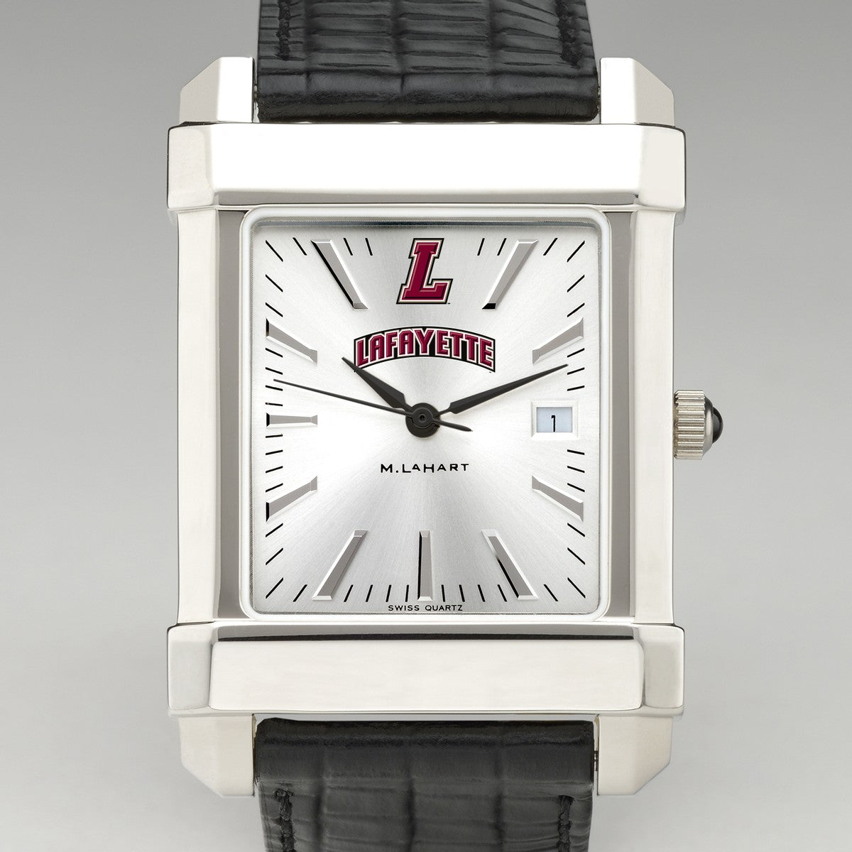 Lafayette College men's steel watch featuring the Lafayette Logo in full color on our sophisticated new dial with a sunray brushed metallic finish.