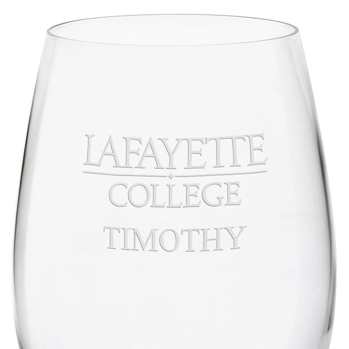 Fine Lafayette College wine glasses are an elegant touch for your table or bar. The Lafayette Logo is deep-etched on each glass.