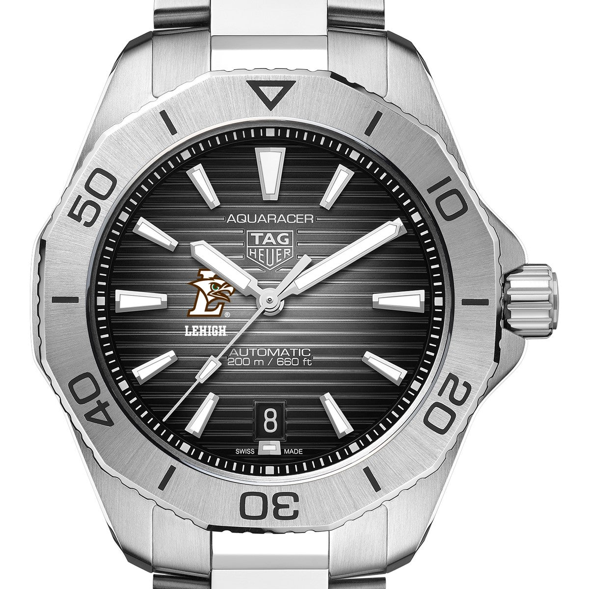 Built for performance and styled for distinction, the Lehigh University Men's TAG Heuer Steel Automatic Aquaracer features Lehigh Logo on a bold black dial and rugged stainless steel construction. Engineered for reliability and precision, it’s a dynamic expression of school pride and professional-grade craftsmanship. Complimentary personal engraving.