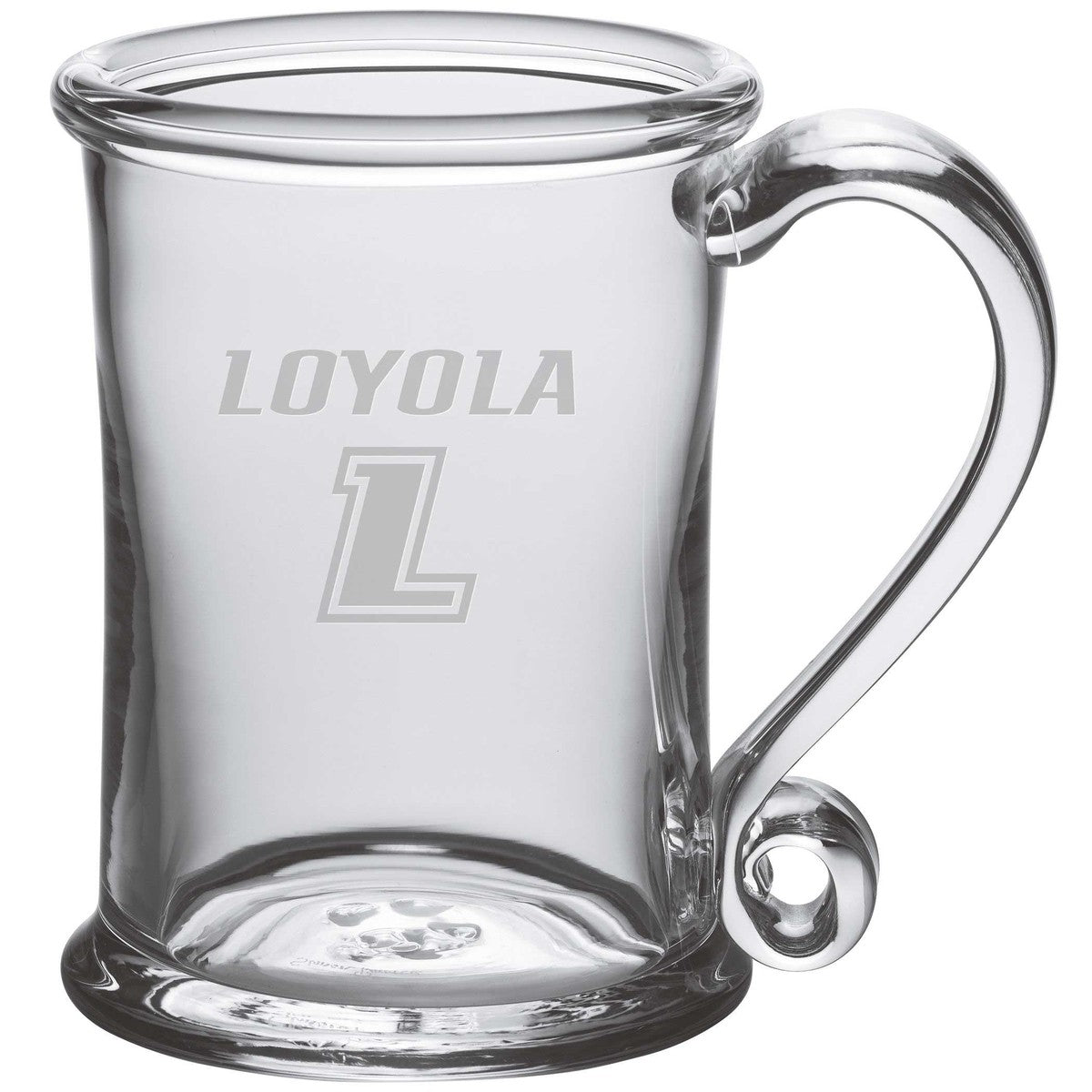 The Loyola Glass Tankard is an ideal choice if you're looking for a versatile glass. The enchantingly curved glass handle will help ensure that you don't spill a drop. The Glass Tankard has the Loyola logo handsomely etched on the hand-blown glass.