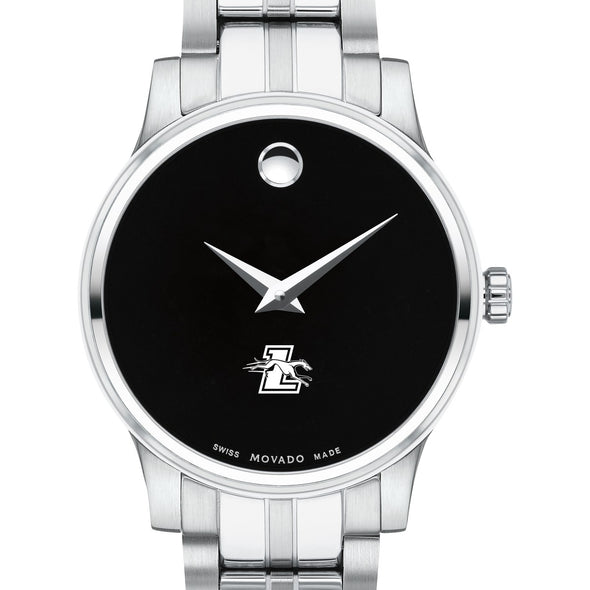 The Loyola University Women's Movado Collection watch showcases the iconic Loyola logo in full color against a sophisticated black dial. This elegant timepiece, featuring the renowned concave dot symbolizing the sun at high noon, embodies timeless style. Personalize your watch with free engraving without any delay to your order.