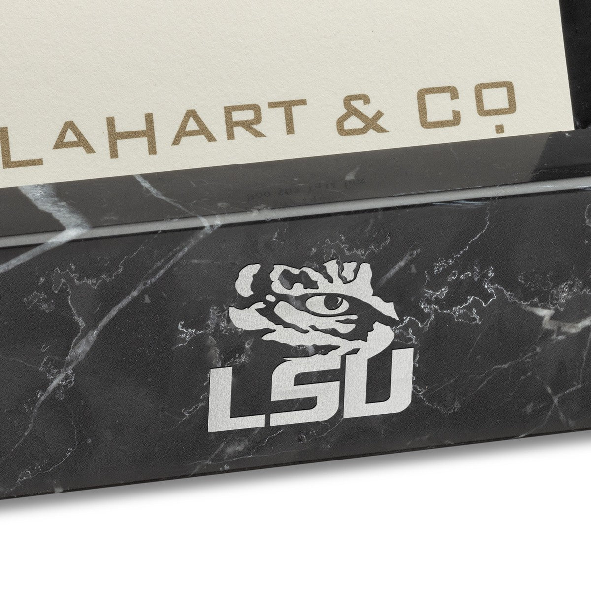 Perfect for new grads and seasoned professionals, the officially licensed Louisiana State University marble cardholder is an essential for the desk of LSU fans. The LSU Logo is elegantly featured on the front of this substantial, solid marble card holder and accommodates all standard size business cards.