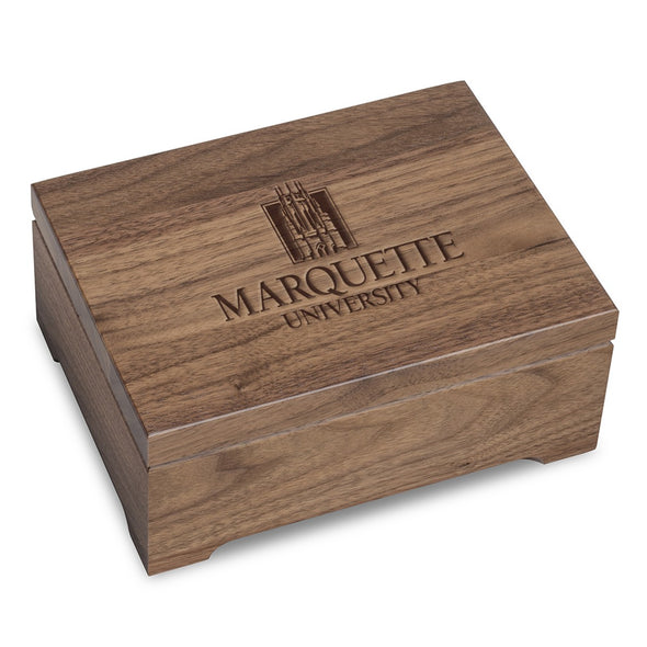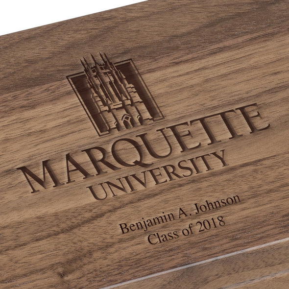 Our beautiful solid walnut desk box is made from hand-selected domestic walnut and crafted in the USA. Each box is hand finished with care, and proudly displays the Marquette Logo on the lid.