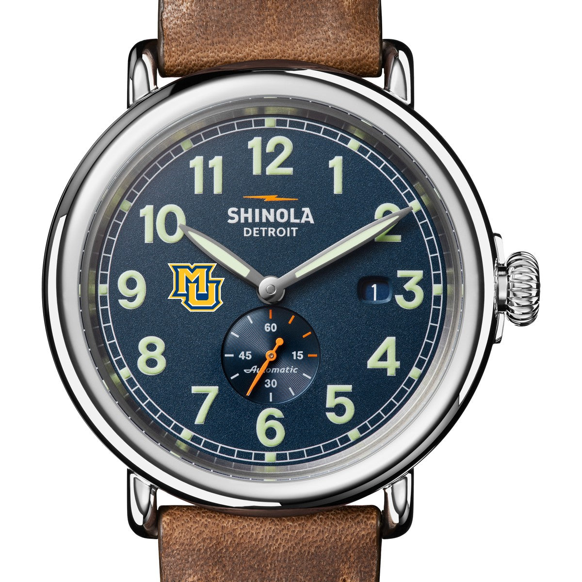 Marquette Shinola Watch, The Runwell Automatic 45 mm Blue Dial and British Tan Strap at M.LaHart & Co.