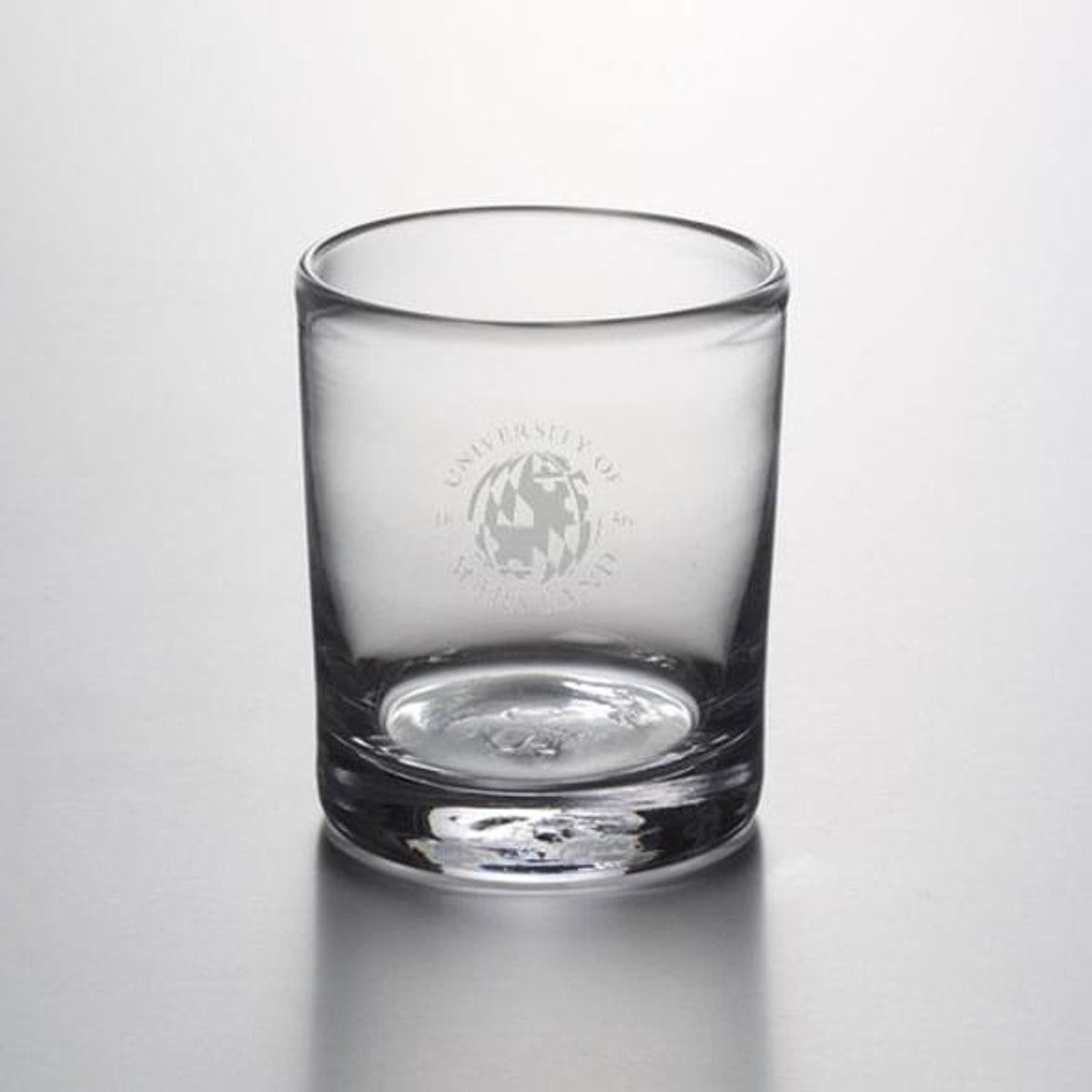 The Maryland Double Old Fashioned Glass features the Maryland Logo etched on the hand-blown glass. From its narrowly flared lip to its sleek, cylindrical body and sturdy, solid base, this glass epitomizes sophistication.