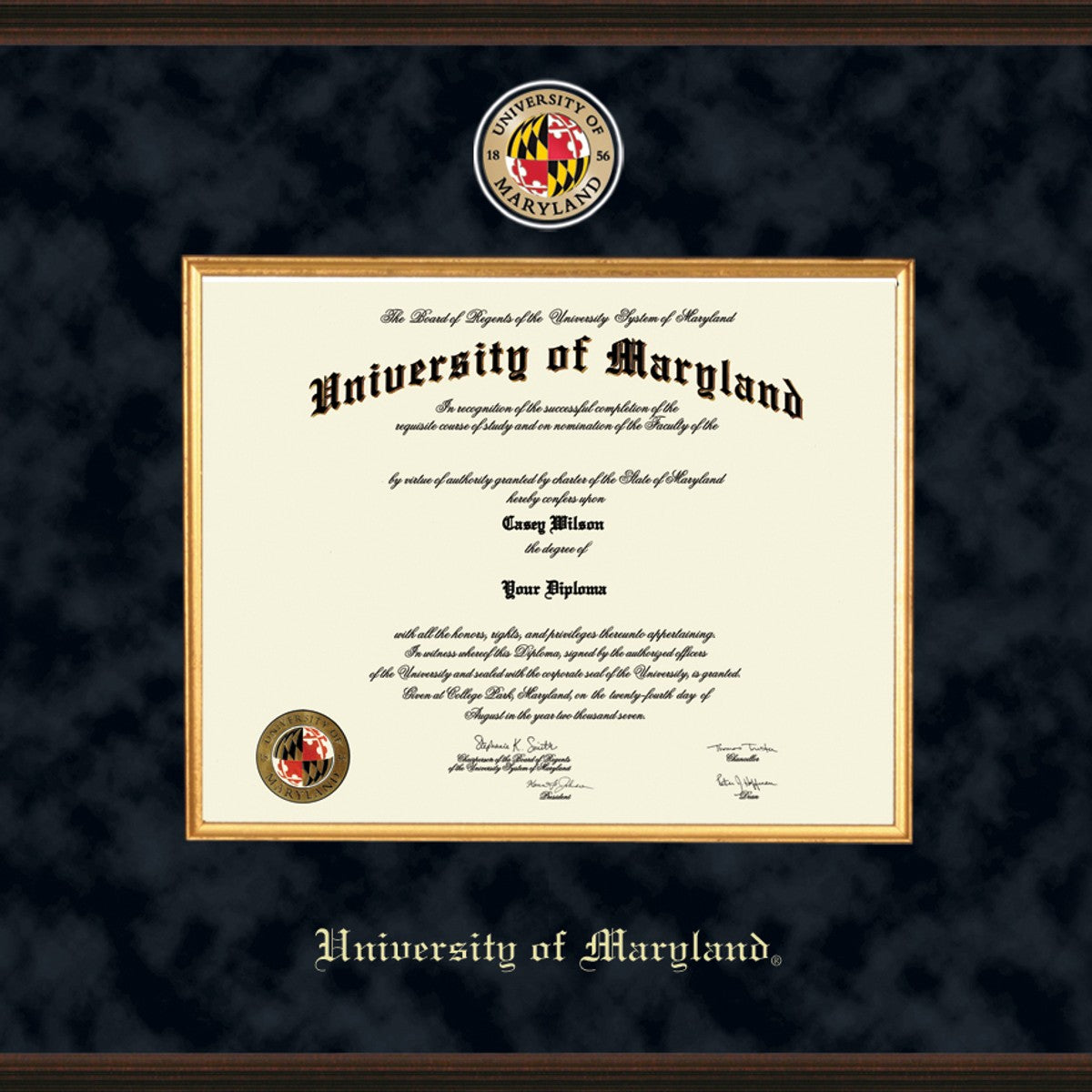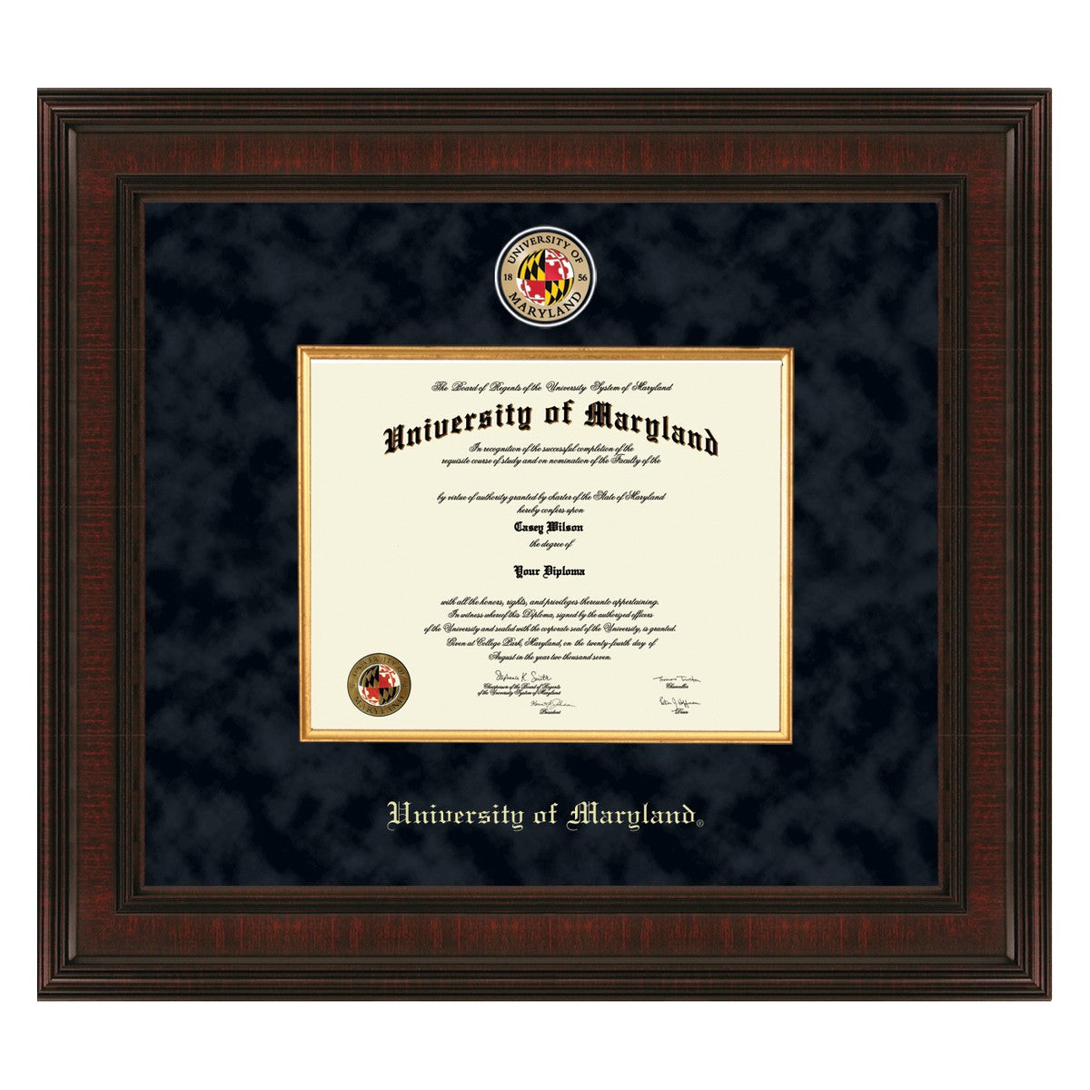 This University of Maryland diploma frame is specifically made to showcase and preserve your University of Maryland Diploma. Made from solid wood in the USA to meet stringent Library of Congress standards for archival document preservation.