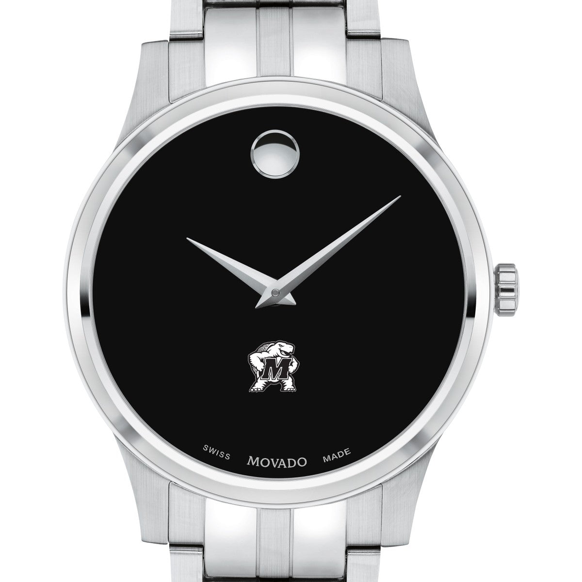 The University of Maryland Men's Movado Collection watch showcases the iconic Maryland Logo in full color on a sophisticated black dial. This classic timepiece, featuring the renowned concave dot symbolizing the sun at high noon, has been a design masterpiece since its creation in 1947. Personalize your watch with free engraving without any delay to your order.