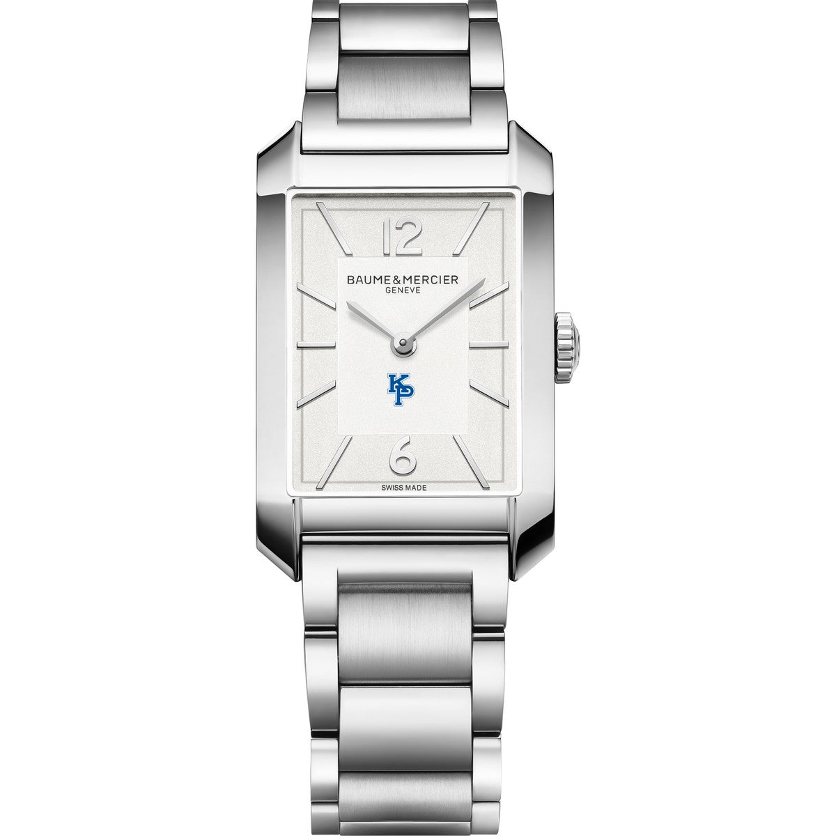 The USMMA Men's Baume et Mercier Hampton Watch combines contemporary design with timeless elegance. Its silver opaline dial, featuring the USMMA logo, rhodium-plated hands, and stainless steel bracelet make this rectangular timepiece a refined choice for any stylish man. Complimentary personal engraving.