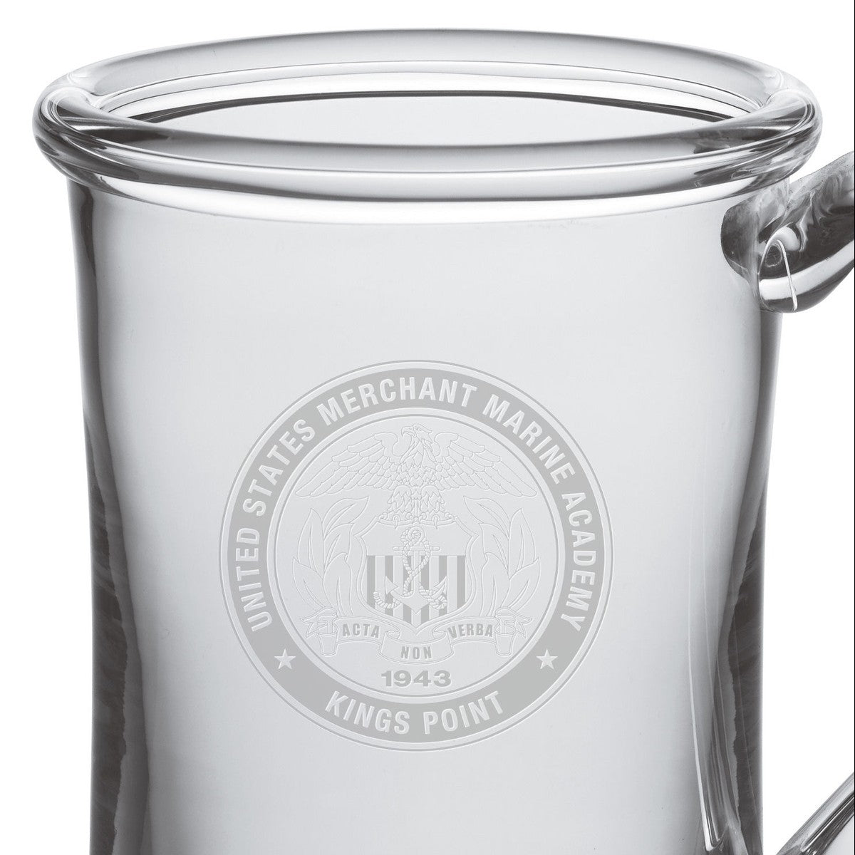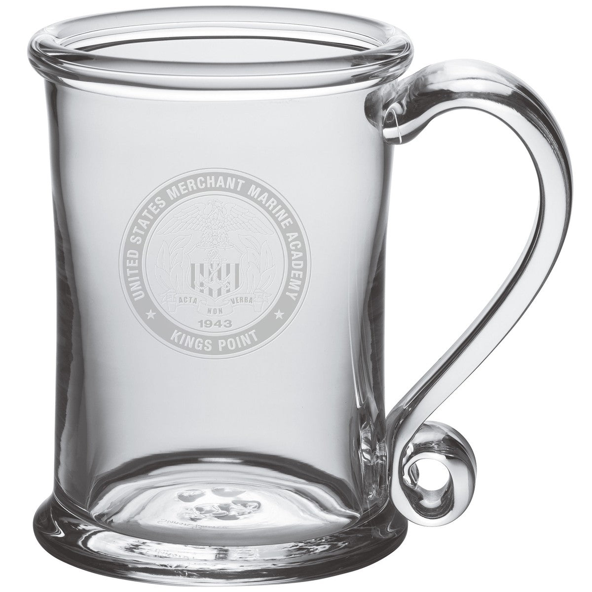 The USMMA Glass Tankard is an ideal choice if you're looking for a versatile glass. The enchantingly curved glass handle will help ensure that you don't spill a drop. The Glass Tankard has the USMMA Logo handsomely etched on the hand-blown glass.