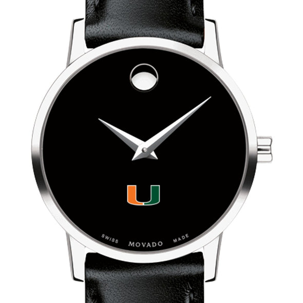 University of Miami Women's Movado Museum watch features the Miami Logo in full color at 6 o'clock on black dial. Created in 1947, the iconic concave dot symbolizes the sun at high-noon. Complimentary personal engraving.