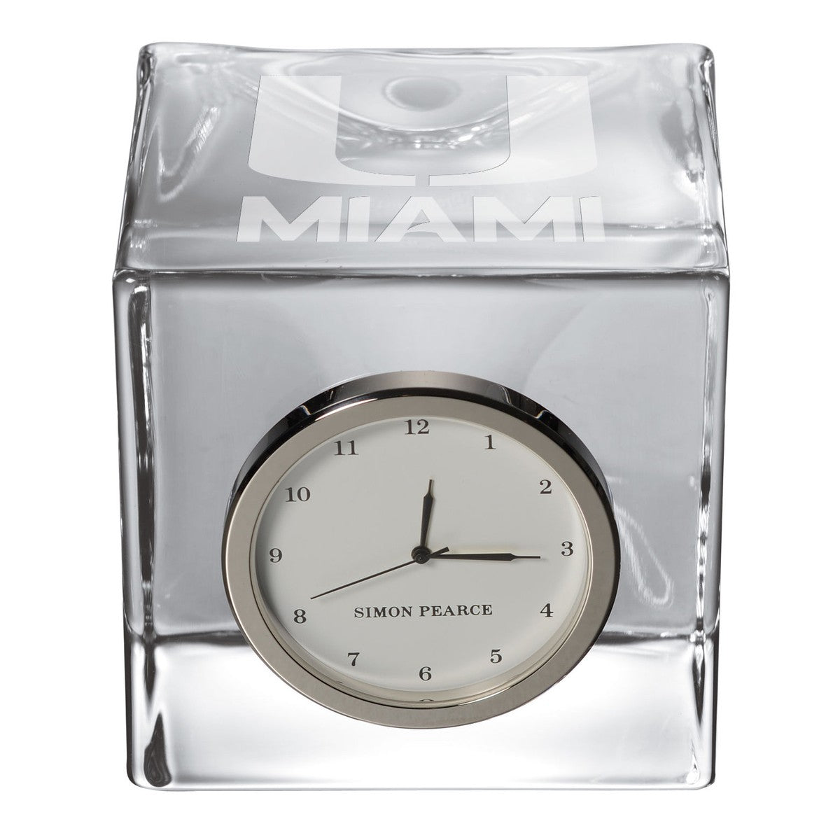 The University of Miami Glass Desk Clock is distinctly etched with the Miami Logo, and is a great addition to any surface. The clock includes a traditional numbered face with a sweep hand to count the seconds.