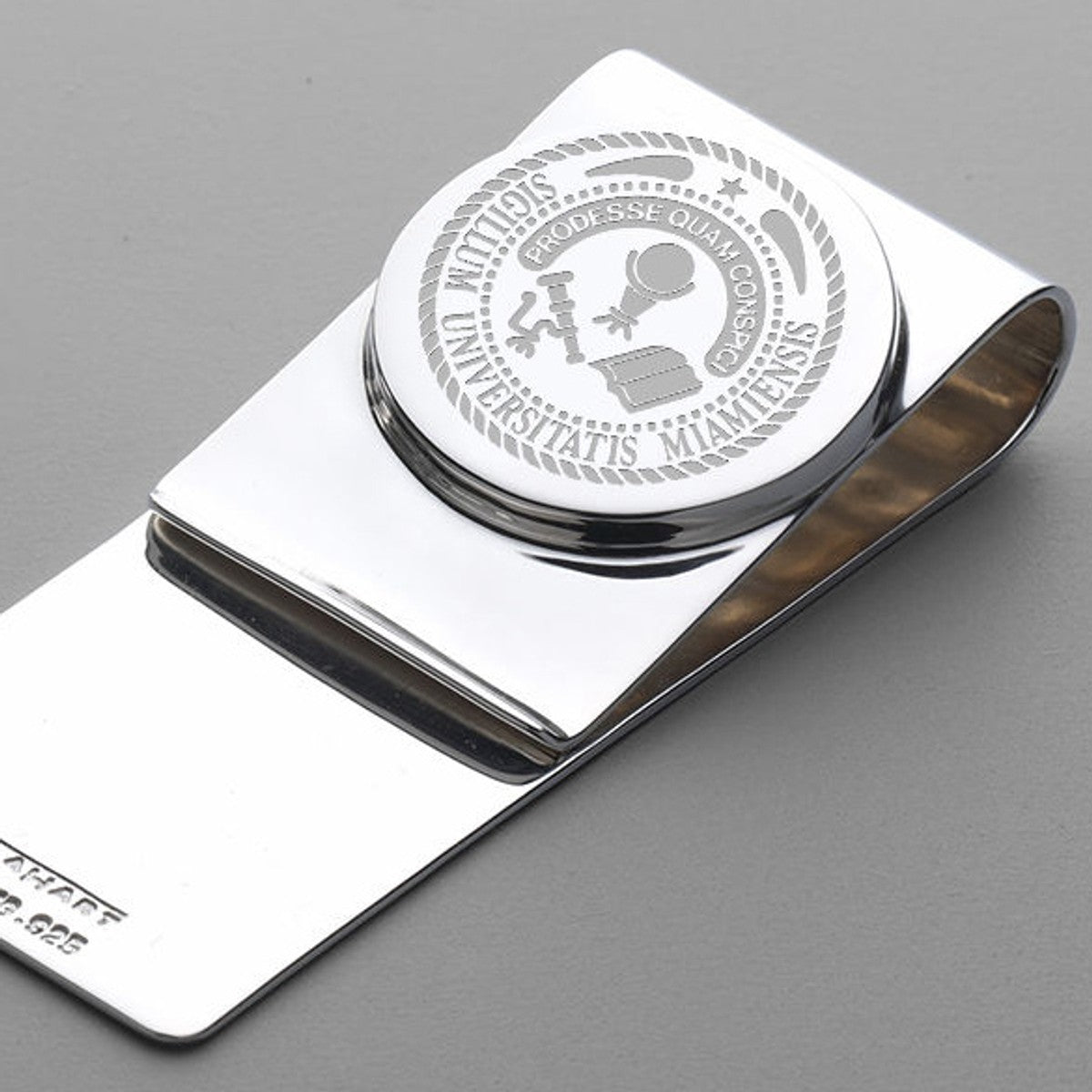 Miami University sterling silver money clip features finely detailed Miami University Logo.