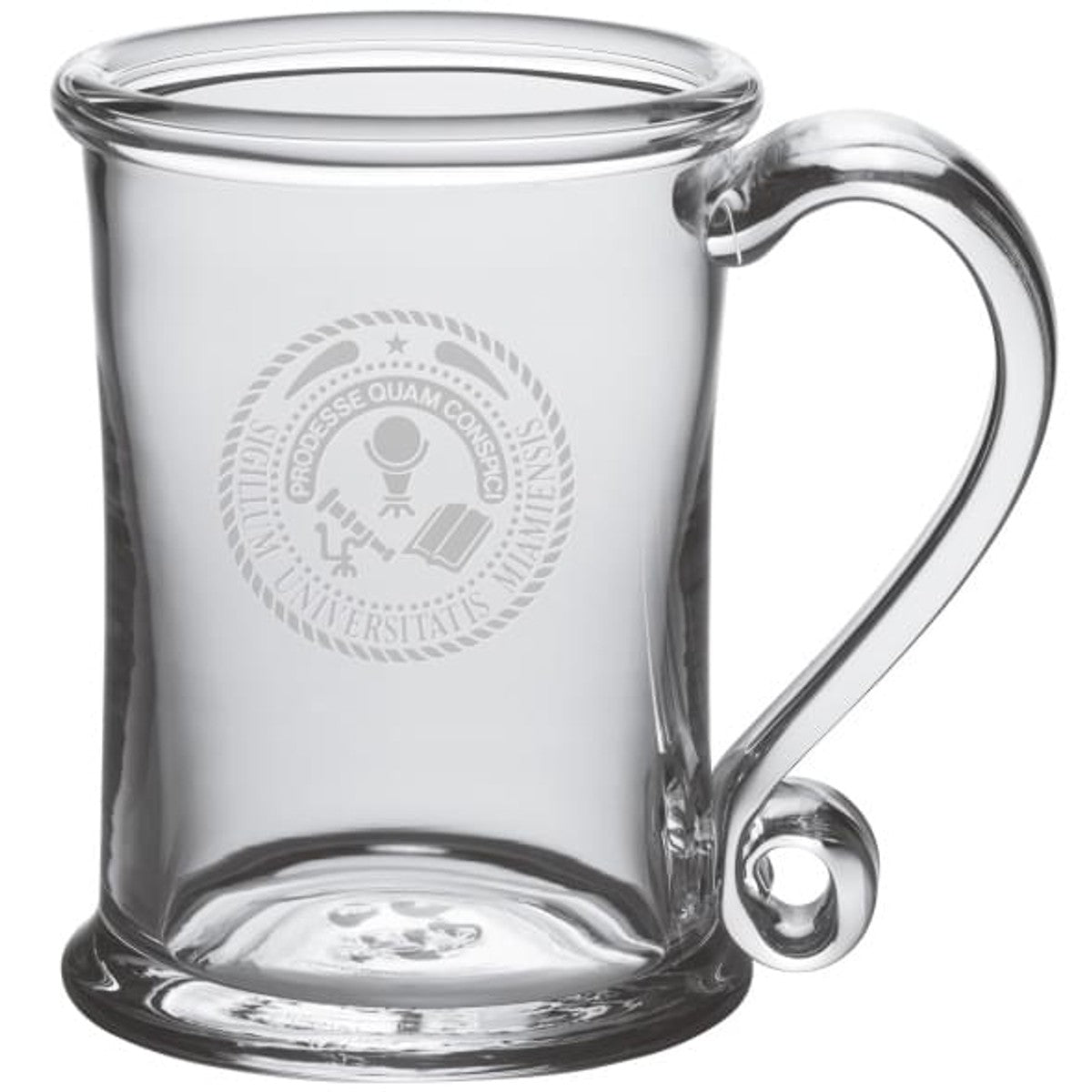 The Miami University Glass Tankard is an ideal choice if you're looking for a versatile glass. The enchantingly curved glass handle will help ensure that you don't spill a drop. The Glass Tankard has the Miami University Logo handsomely etched on the hand-blown glass.
