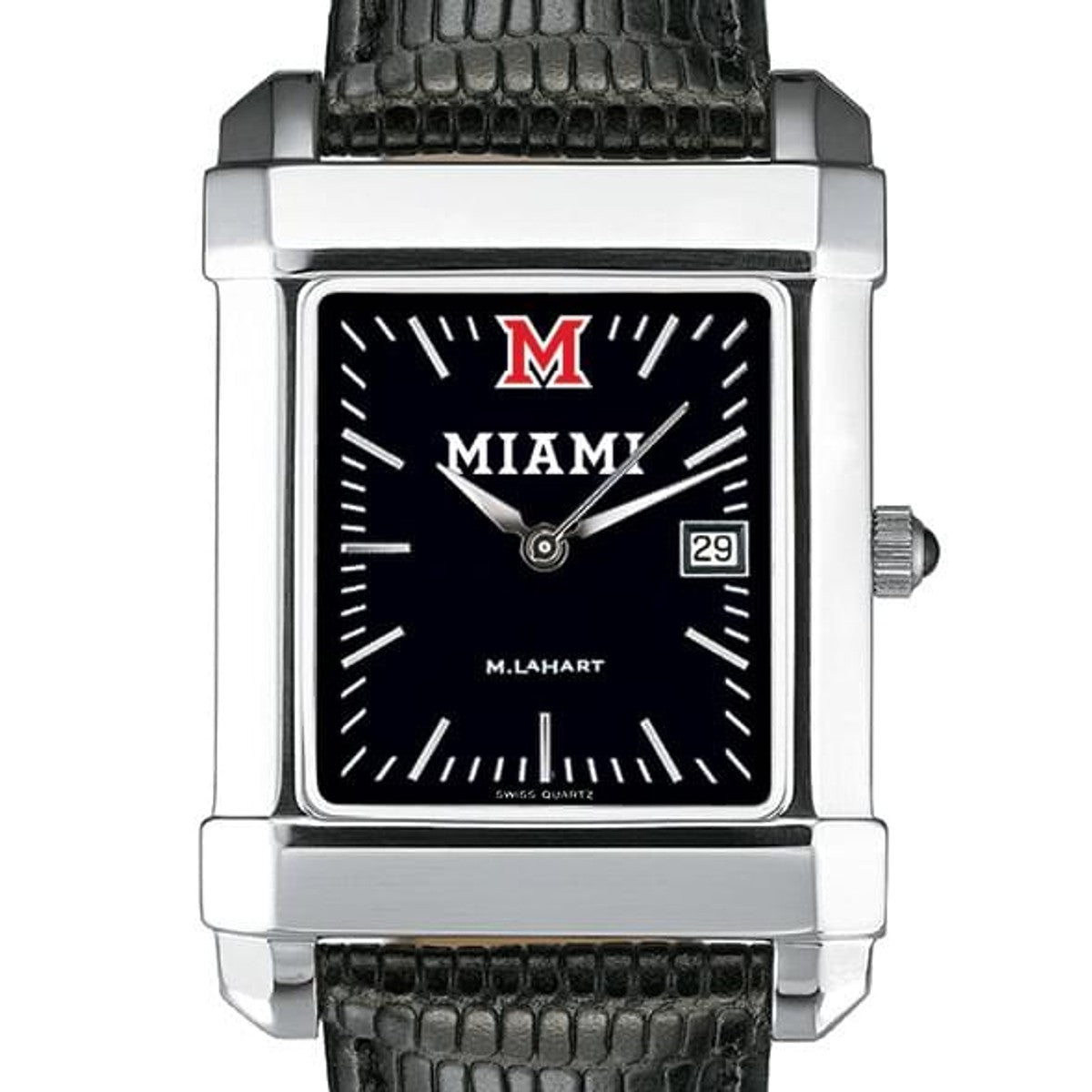 Miami University men's steel watch featuring Miami University M logo at 12 o'clock and "Miami" inscribed below on the black dial.