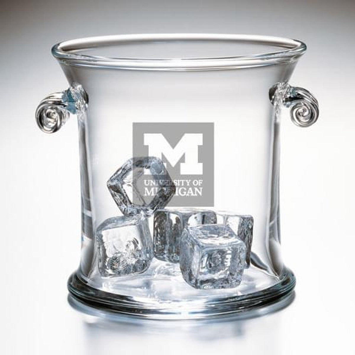 The Michigan Glass Ice Bucket, with its beautifully etched Michigan Logo, is perfect for keeping wine chilled on an elegant table.