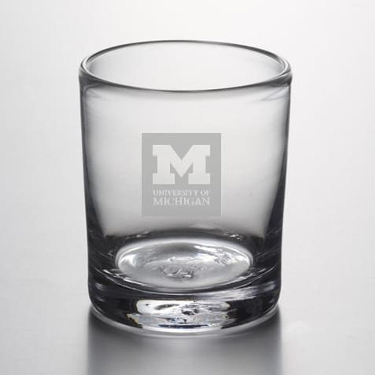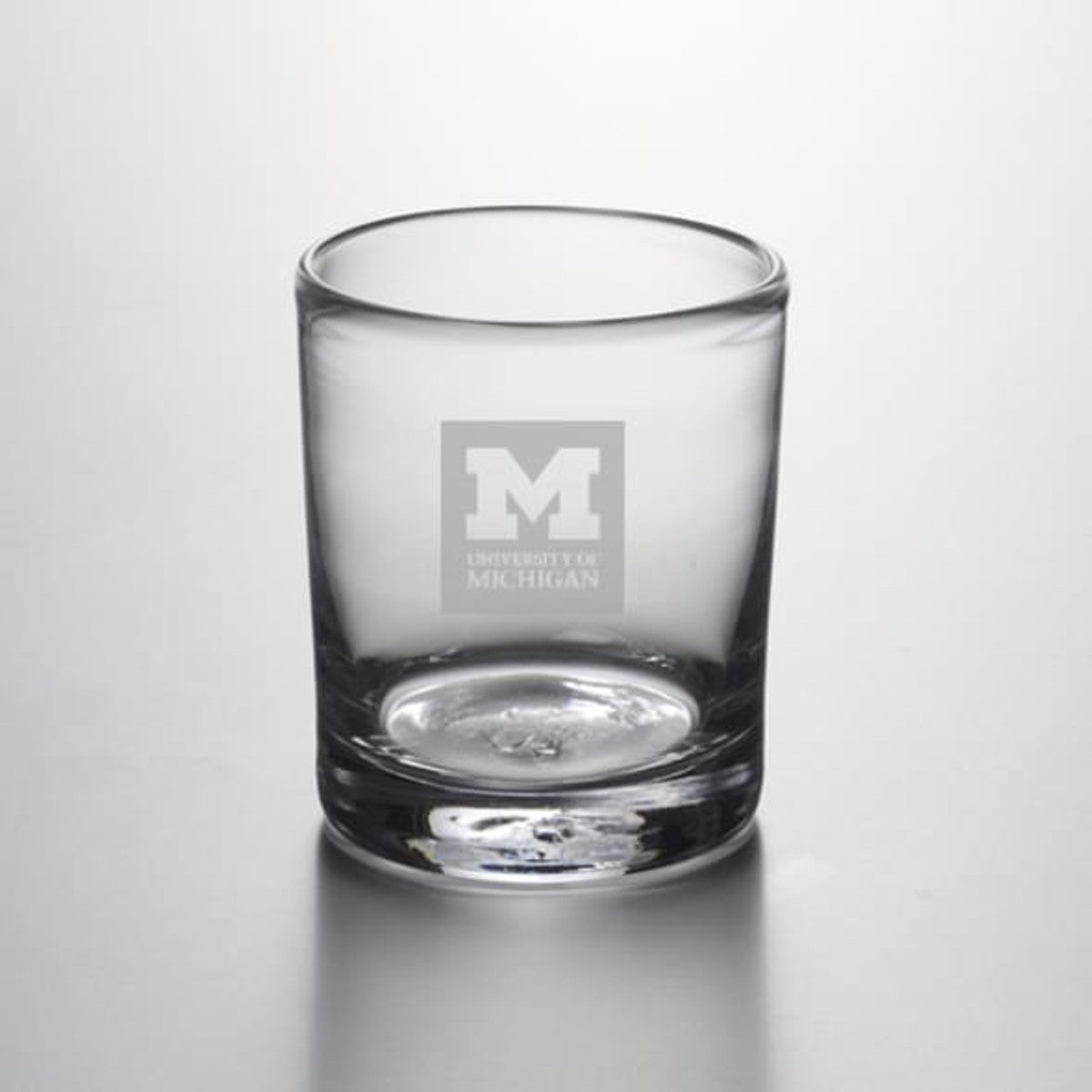 The Michigan Double Old Fashioned Glass features the Michigan Logo etched on the hand-blown glass. From its narrowly flared lip to its sleek, cylindrical body and sturdy, solid base, this glass epitomizes sophistication.