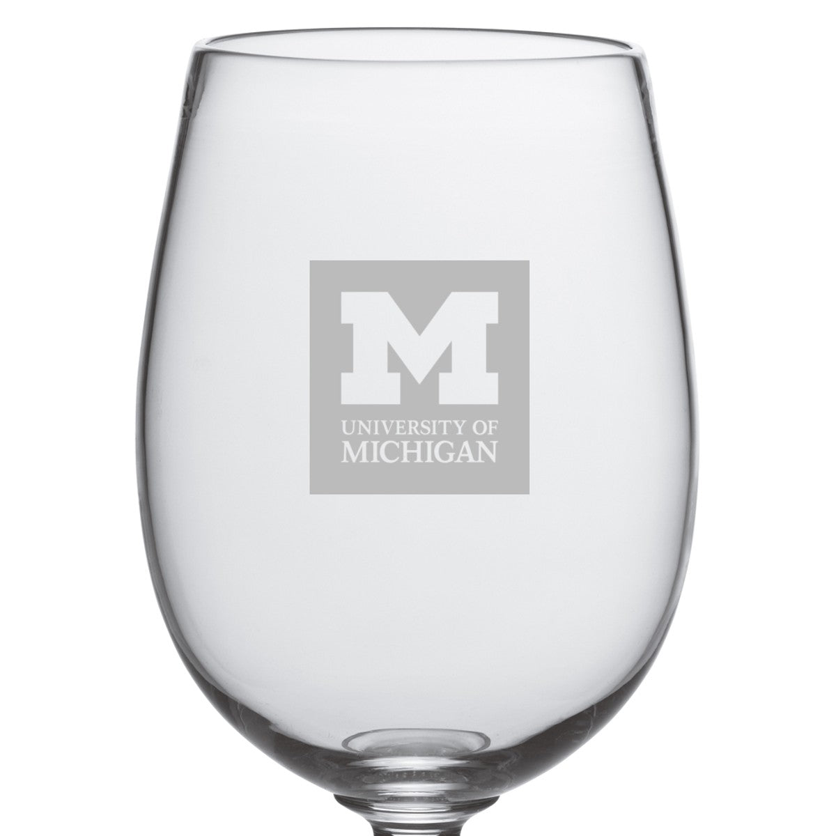 The University of Michigan Red Wine Glass is crafted to enhance the rich flavors of your favorite wines. The Michigan Logo is beautifully etched onto the hand-blown glass, adding a touch of Michigan pride to every pour. With its wide bowl and elegant stem, this glass is designed to bring out the full bouquet of any red wine, making it perfect for both intimate dinners and grand celebrations.