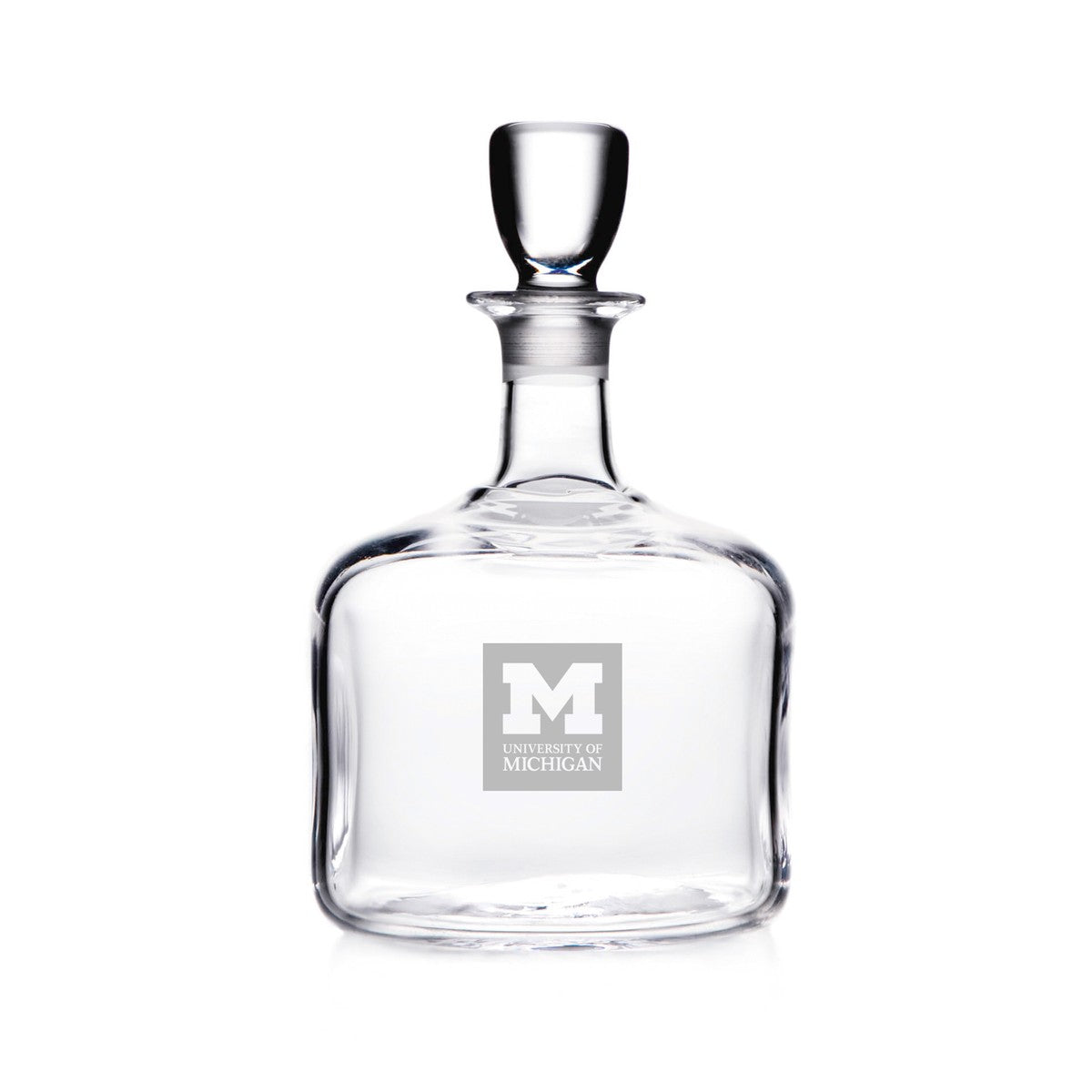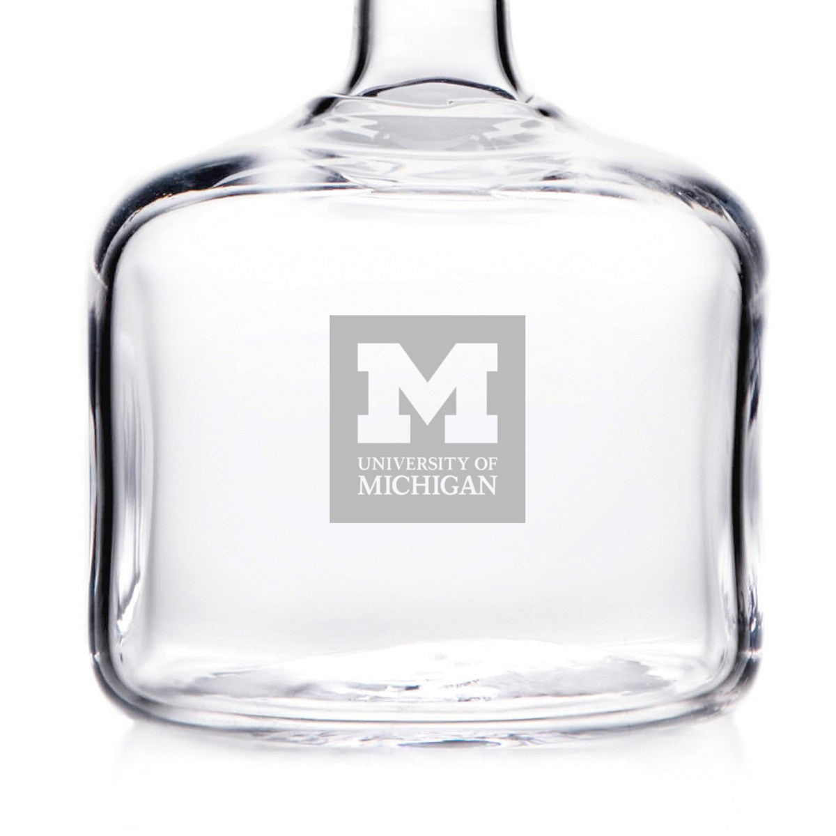 The University of Michigan Decanter and Whiskey Glass Set is the perfect addition to any Michigan home or office. Handcrafted from the finest glass, the decanter and matching set of 2 glasses feature the Michigan Logo beautifully etched on each piece, adding a touch of Michigan pride to your barware. Whether used for entertaining or display, this set exudes sophistication and style.