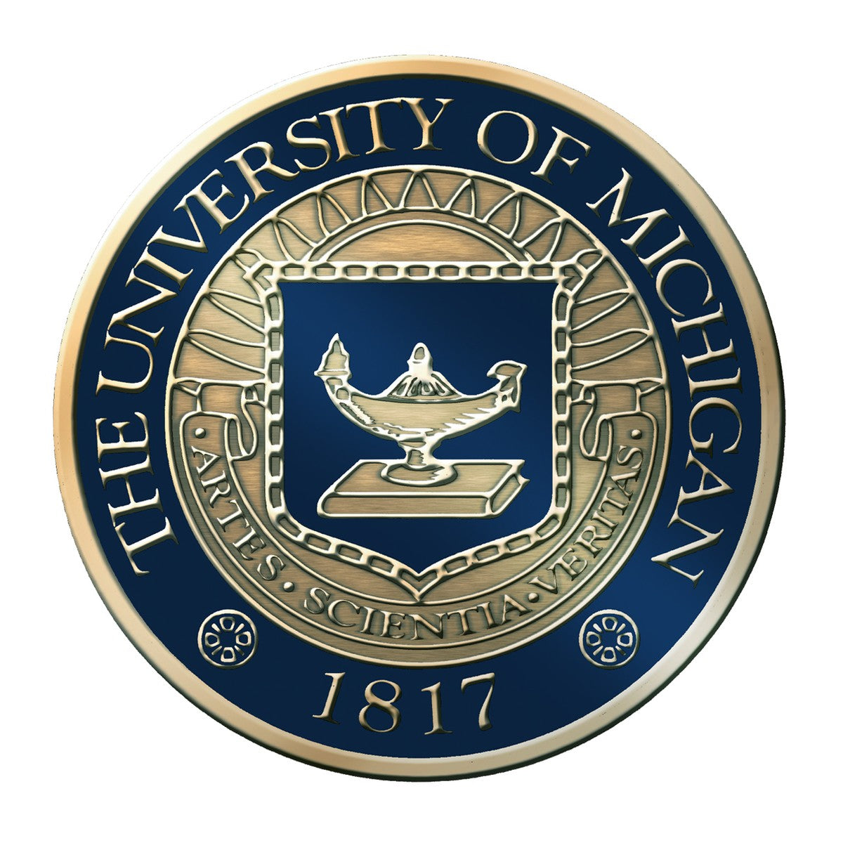 - Custom minted University of Michigan Medical School seal with hand painted enamel accents; inset into bevel-cut opening