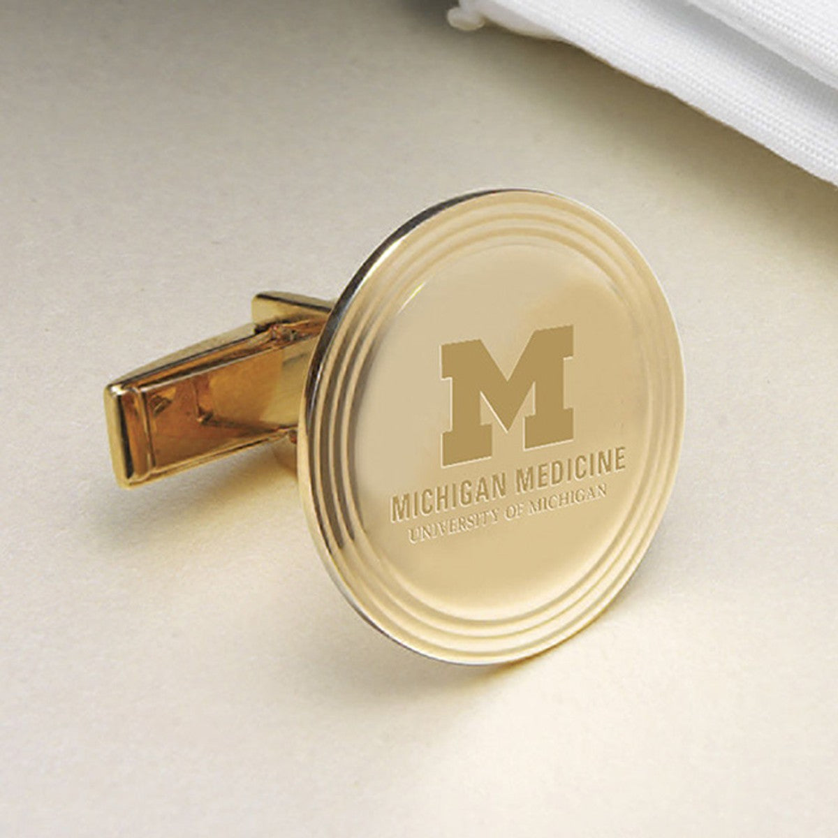 University of Michigan Medical School 18-karat gold cufflinks are elegantly and richly detailed with the University of Michigan Medical School logo, making an ideal custom gift.