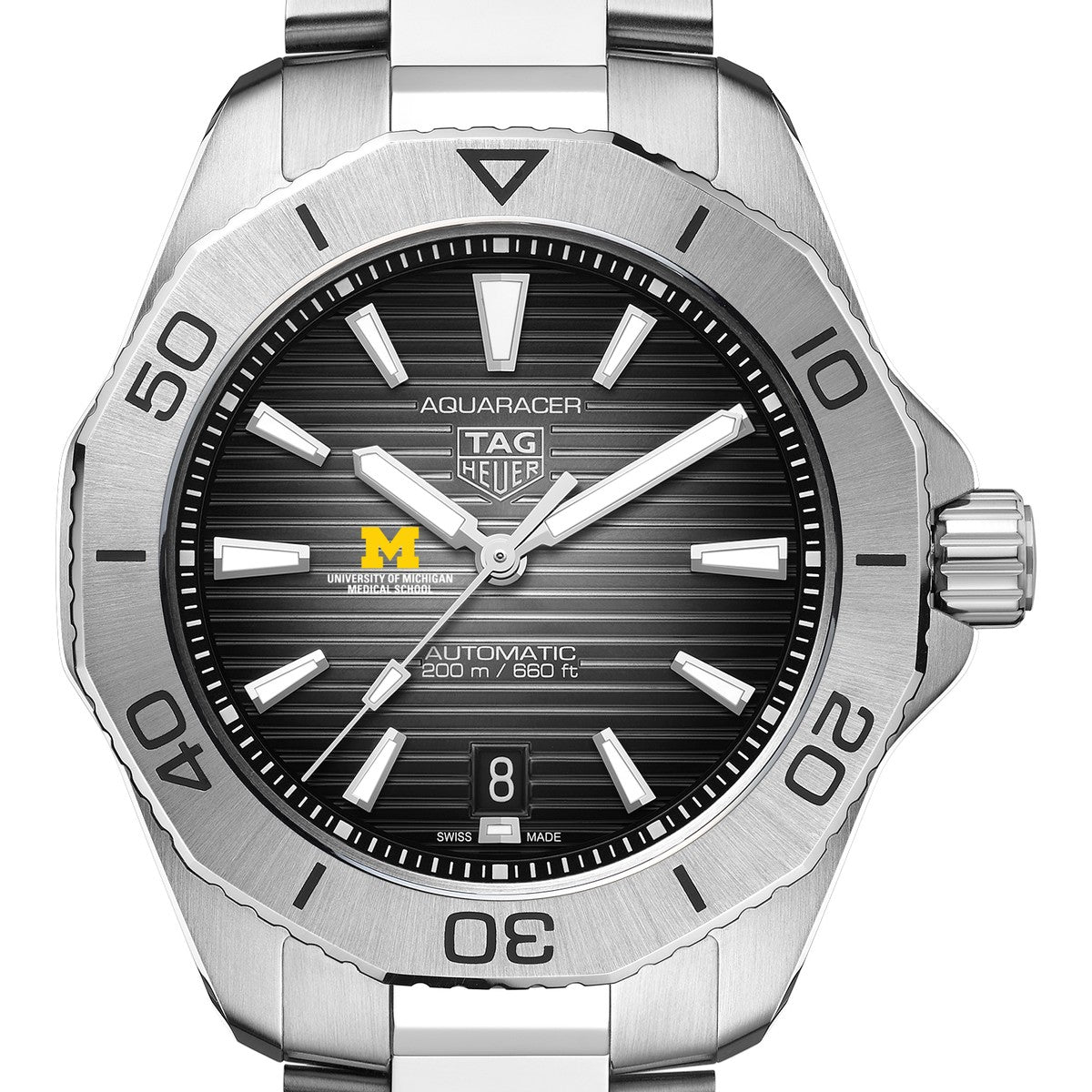 Built for performance and styled for distinction, the University of Michigan Medical School Men's TAG Heuer Steel Automatic Aquaracer features University of Michigan Medical School logo on a bold black dial and rugged stainless steel construction. Engineered for reliability and precision, it’s a dynamic expression of school pride and professional-grade craftsmanship. Complimentary personal engraving.