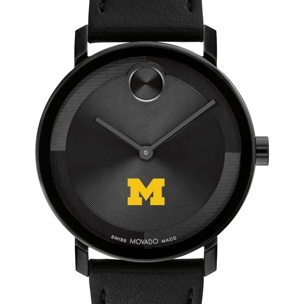 University of Michigan Men's Movado BOLD with Black Leather Strap