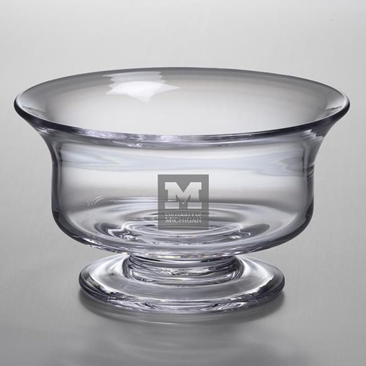 The University of Michigan Glass Presentation Bowl, with the Michigan Logo beautifully etched into the hand-crafted glass is a great gift. The traditional style of the bowl complements any University of Michigan home.