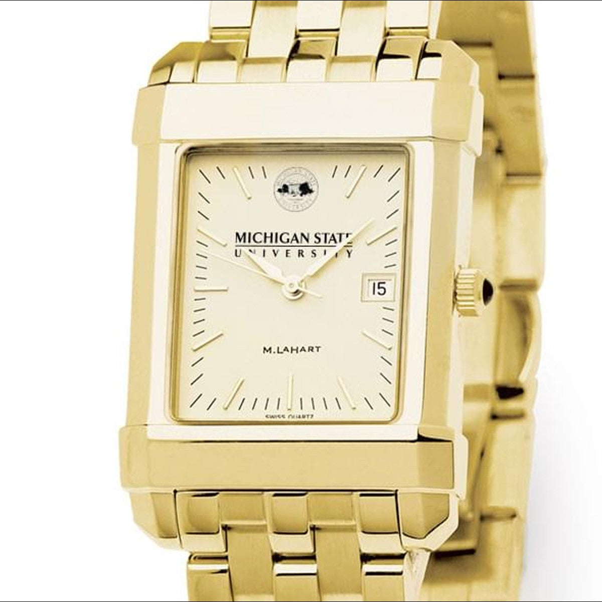 Michigan State University men's gold watch featuring the Michigan State Logo on cream dial. Free Engraving on all watches.