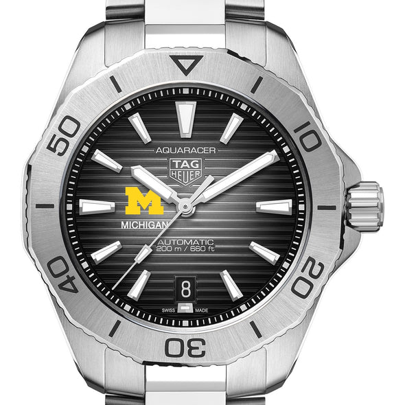 Built for performance and styled for distinction, the University of Michigan Men's TAG Heuer Steel Automatic Aquaracer features Michigan Logo on a bold black dial and rugged stainless steel construction. Engineered for reliability and precision, it’s a dynamic expression of school pride and professional-grade craftsmanship. Complimentary personal engraving.