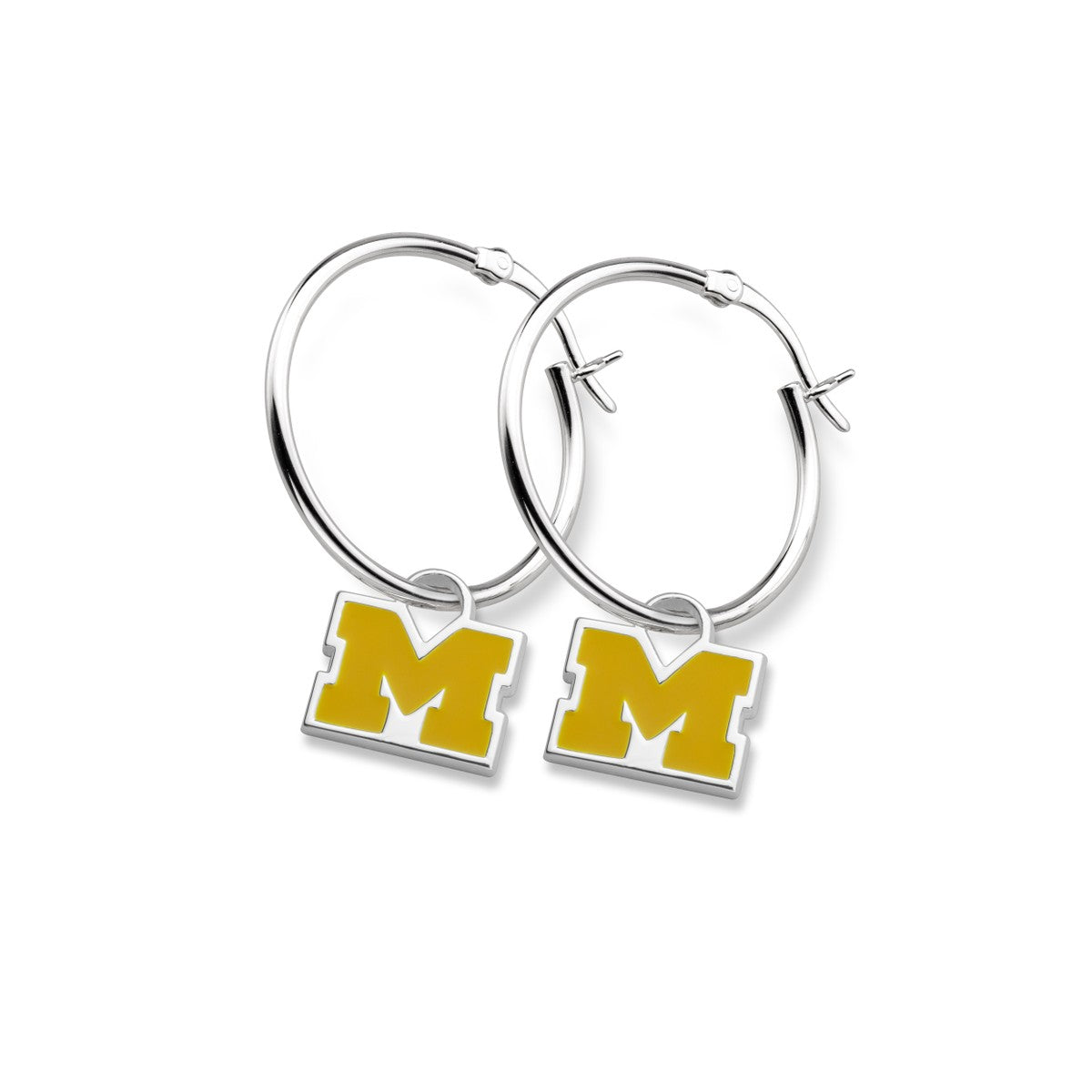 Our stylish Michigan sterling silver earrings are the perfect compliment to any outfit. These earrings are sure to turn heads; each adorned with a sterling silver charm featuring the school logo in colored enamel.