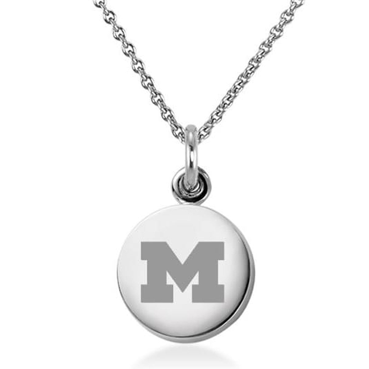 University of Michigan sterling silver necklace and sterling silver charm, perfect for any proud Michigan alumnus or fan. Personalize the charm with initials or graduation year for a custom gift or keepsake.