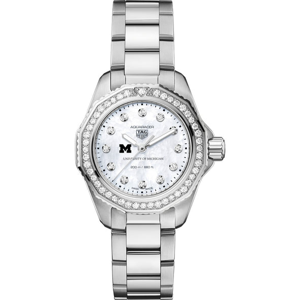 University of Michigan Women's TAG Heuer Steel Aquaracer with Diamond Dial & Bezel features the Michigan Logo. Complimentary personal engraving.