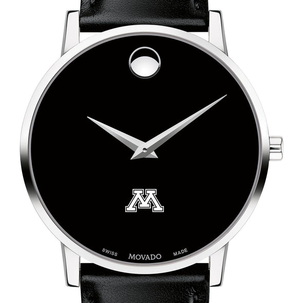 University of Minnesota Men's Movado Museum watch features the Minnesota logo in full color at 6 o'clock on black dial. Created in 1947, the iconic concave dot symbolizes the sun at high-noon. Complimentary personal engraving.