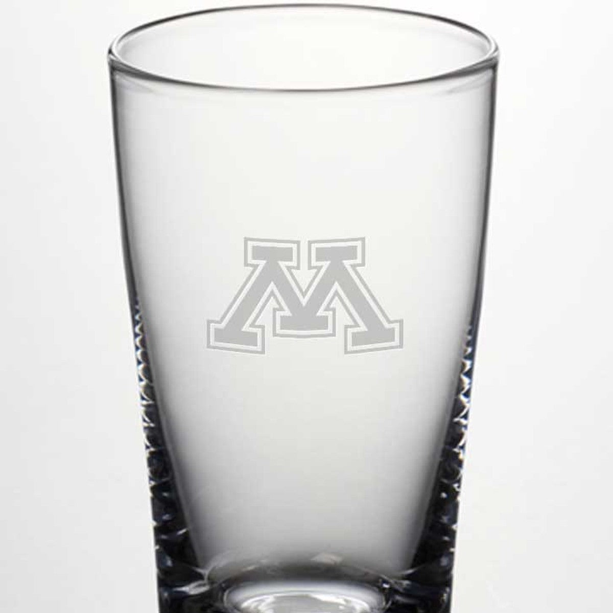 Minnesota Pint Glass features the Minnesota logo handsomely engraved on the hand-blown glass. From its narrowly flared lip to its sleek, cylindrical body and sturdy, solid base, this pint glass is a classic.