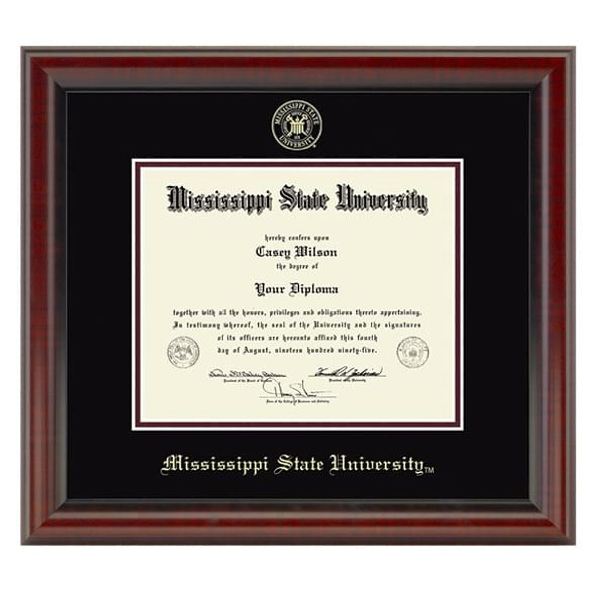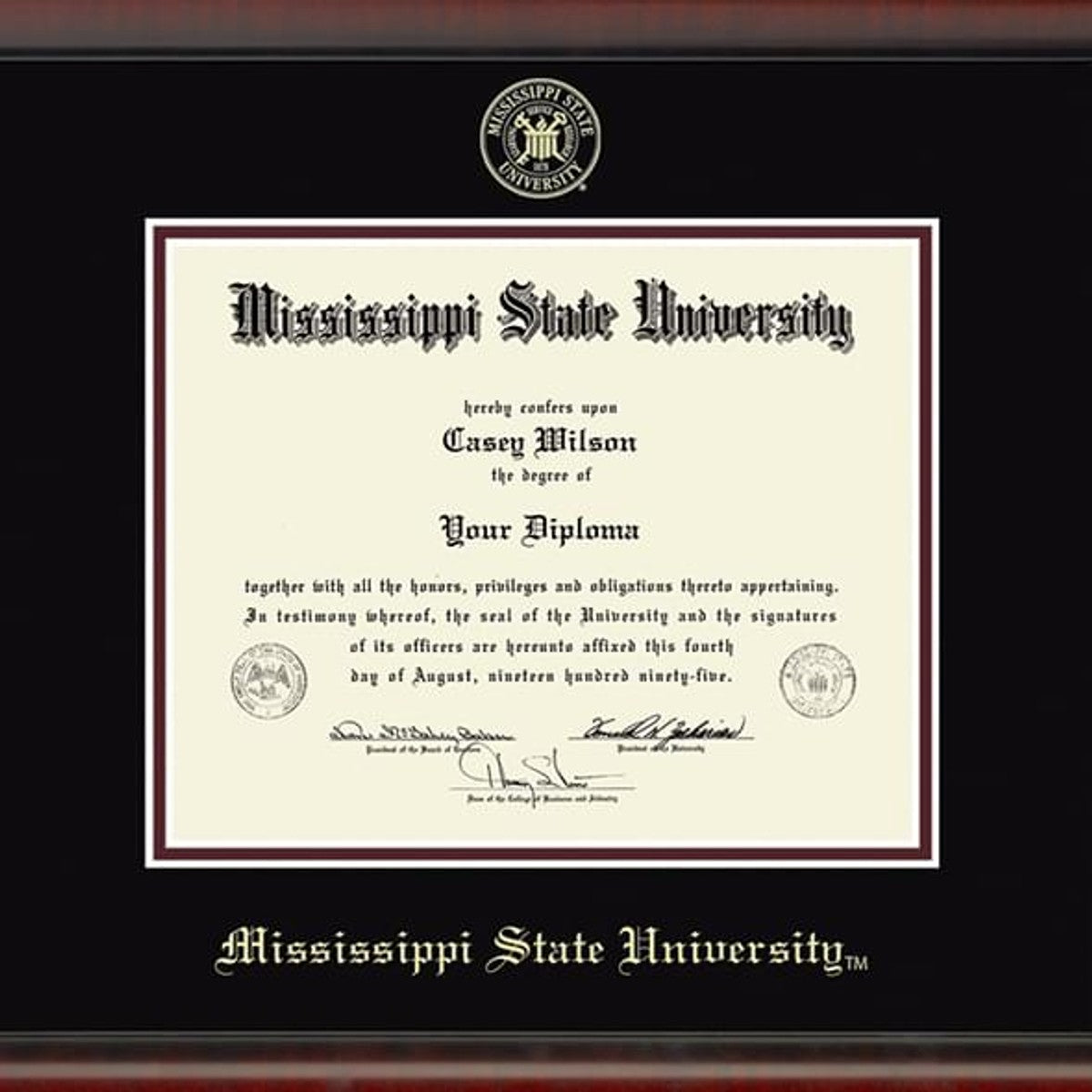 This Mississippi State diploma frame is crafted from solid wood in the USA. Proudly display your MS State diploma with museum quality conservation mounting materials to showcase and protect your Mississippi State diploma.