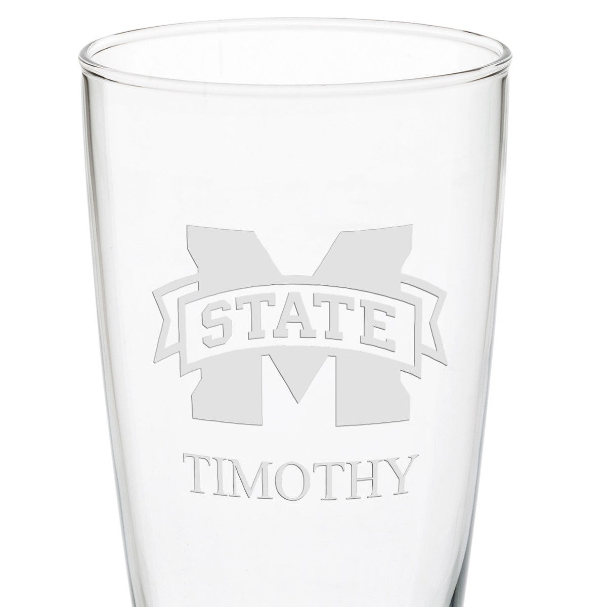 Fans can raise a glass to MS State with these glasses. The MS State Logo is deep-etched, and your name can be added under the logo for free.