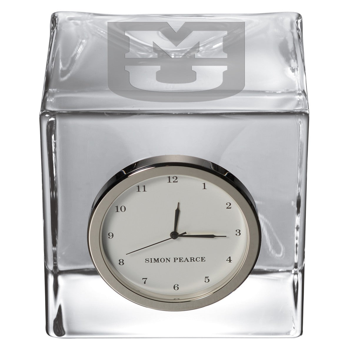 The University of Missouri Glass Desk Clock is distinctly etched with the Missouri logo, and is a great addition to any surface. The clock includes a traditional numbered face with a sweep hand to count the seconds.
