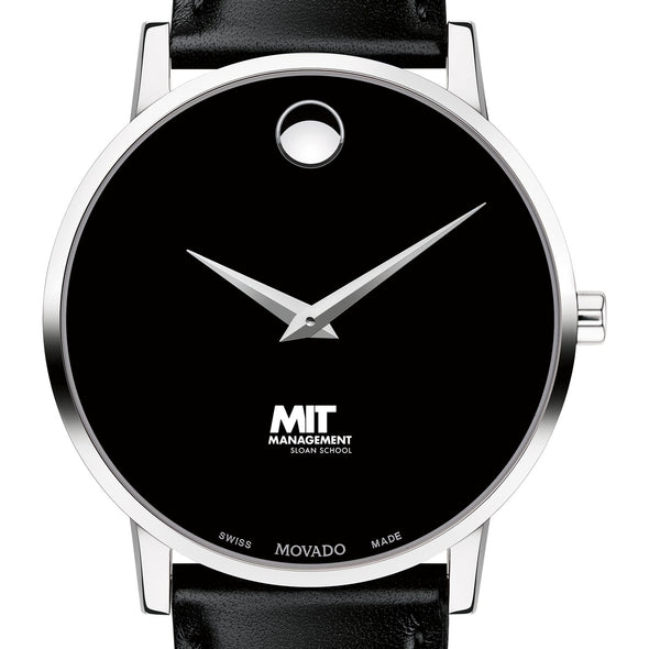 MIT Sloan School of Management Men's Movado Museum watch features the MIT Sloan logo in full color at 6 o'clock on black dial. Created in 1947, the iconic concave dot symbolizes the sun at high-noon. Complimentary personal engraving.