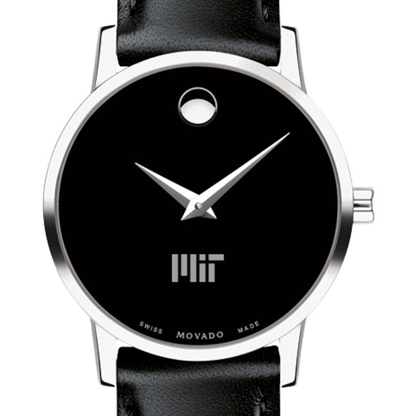 MIT Women's Movado Museum watch features the MIT Logo in full color at 6 o'clock on black dial. Created in 1947, the iconic concave dot symbolizes the sun at high-noon. Complimentary personal engraving.