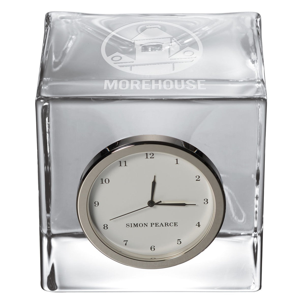 The Morehouse College Glass Desk Clock is distinctly etched with the Morehouse College Logo, and is a great addition to any surface. The clock includes a traditional numbered face with a sweep hand to count the seconds.